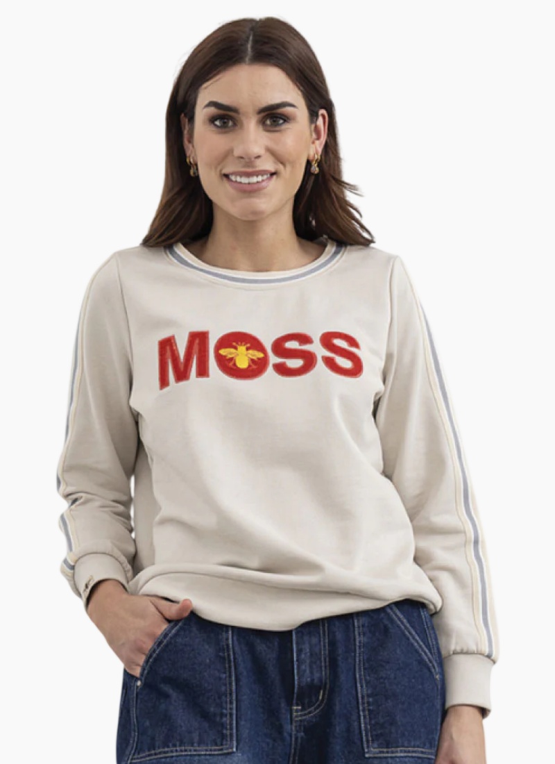 - Taupe from MOSS. This effortless sweatshirt combines everyday comfort with bold branding for a polished, casual look.