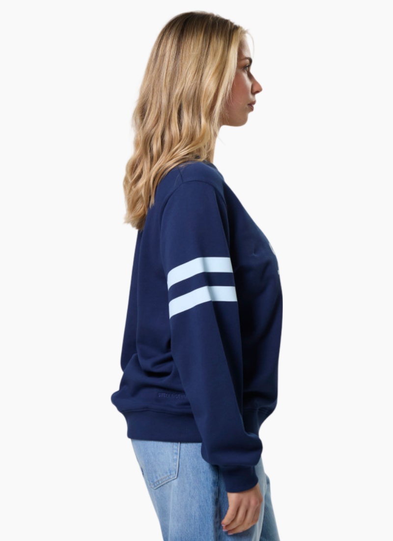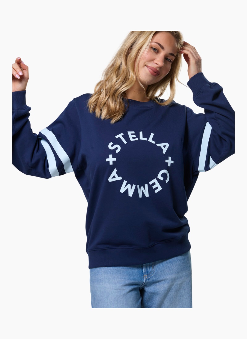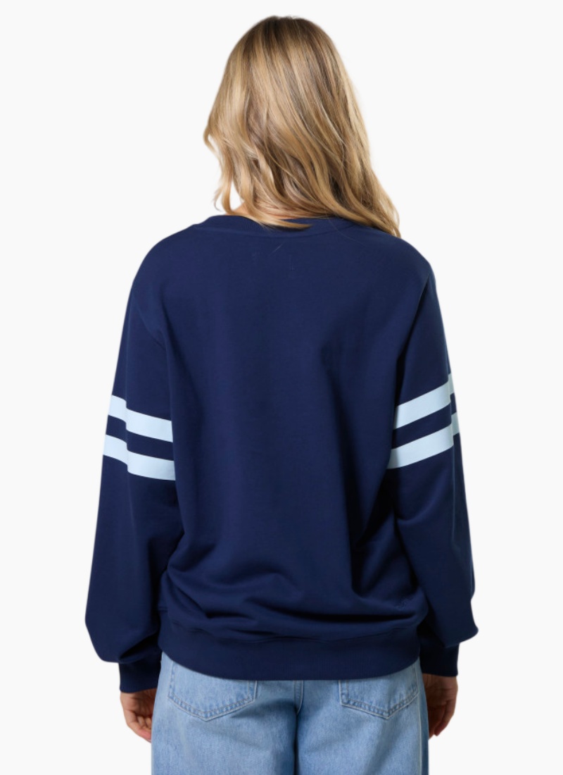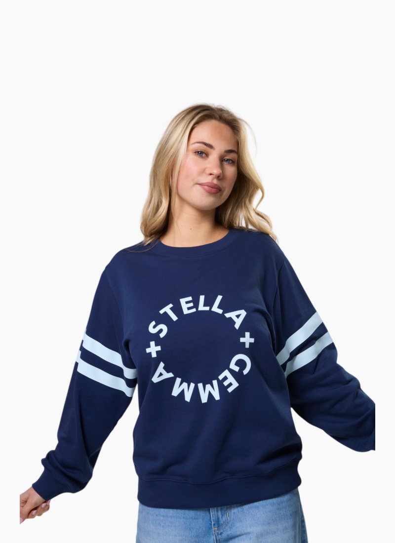 Relaxed crew neckline sweater with set-in sleeves and rib cuffs and hemline