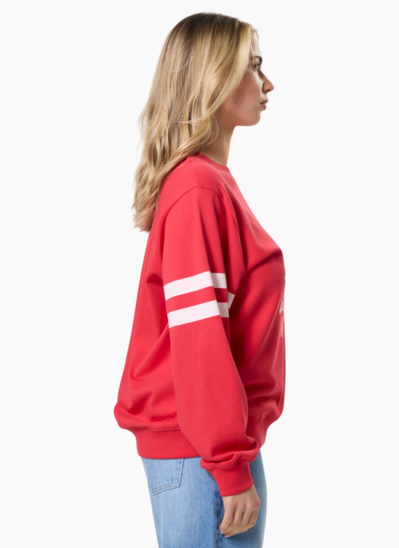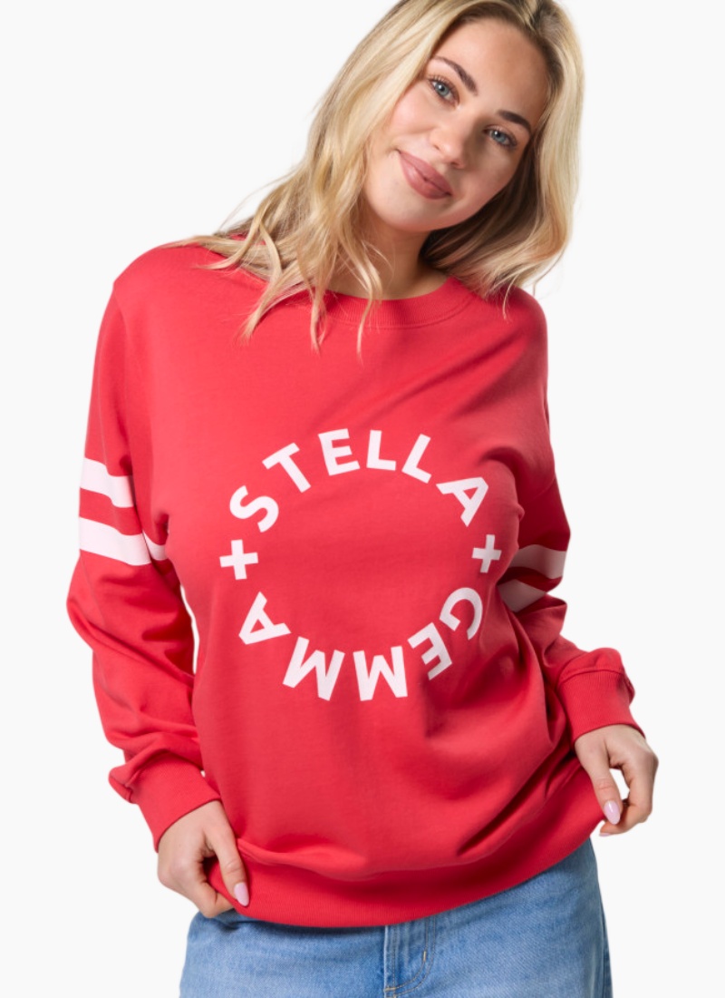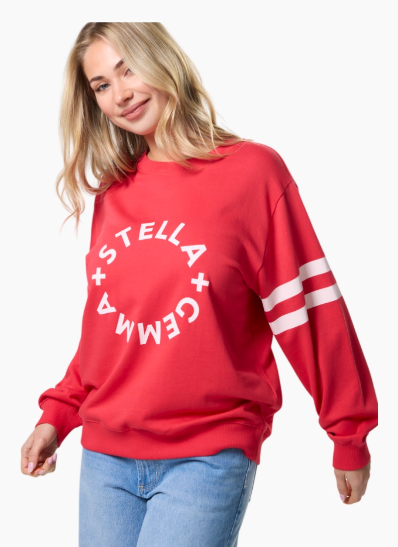 Relaxed crew neckline sweater with set-in sleeves and rib cuffs and hemline