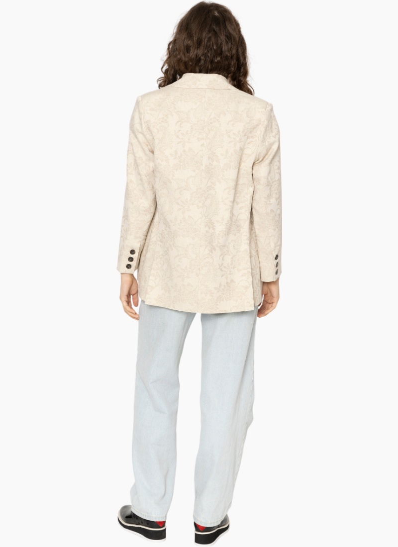 Introducing the 711 Elyse Jacket from Blacklist. A beautifully textured blazer that elevates everyday tailoring with a soft cream floral jacquard.