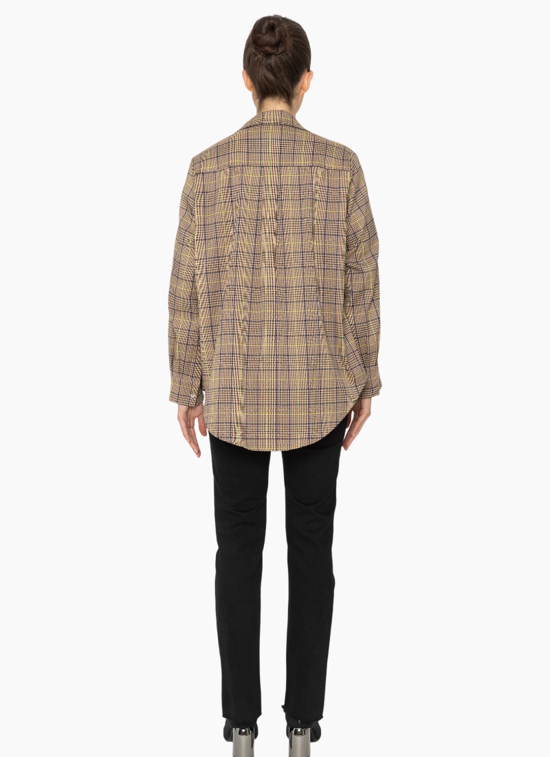 - Features a tan check colourway with subtle accent lines for timeless appeal