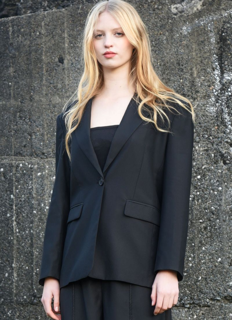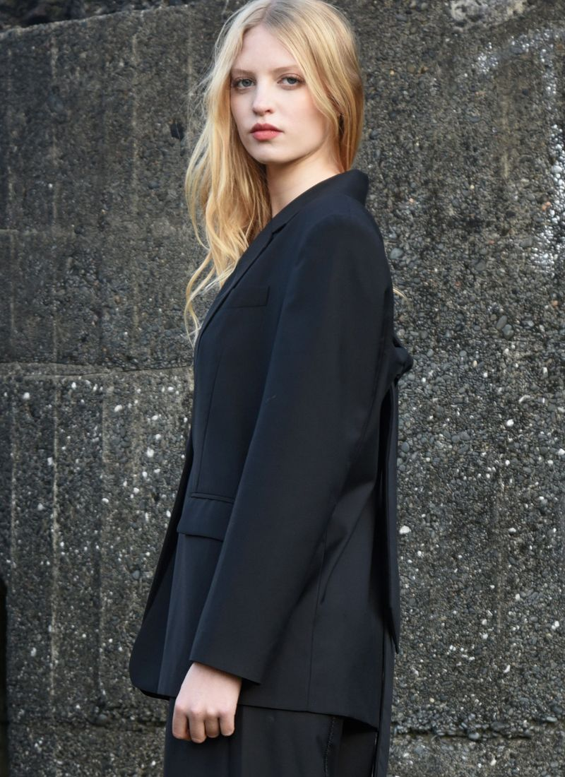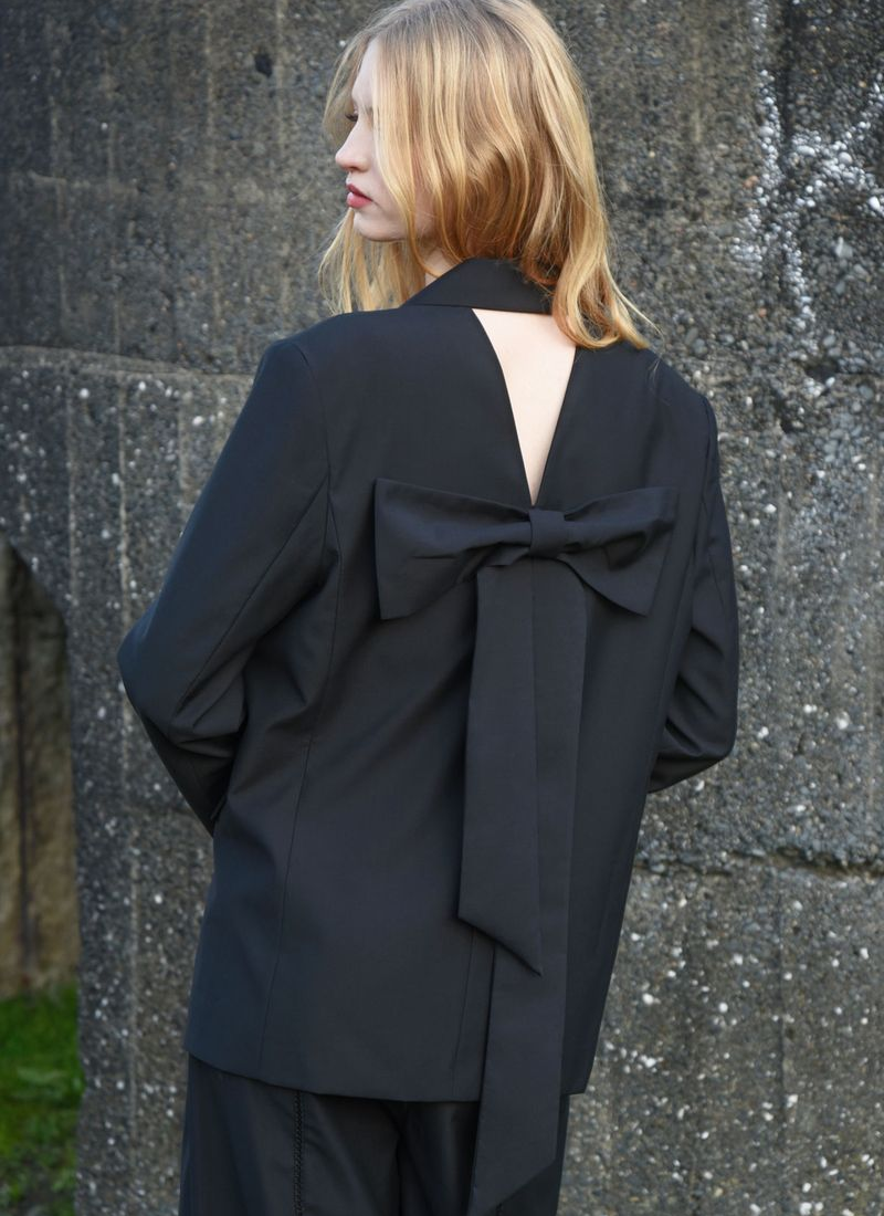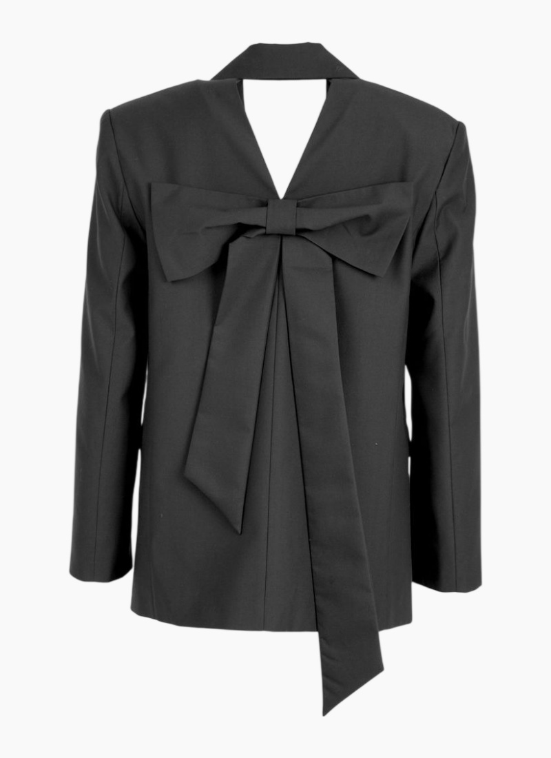 Sharp tailoring meets whimsical detail in the ‘Bow Tied’ blazer, crafted from ‘Well Suited’ twill suiting. With a single-breasted front and classic notched lapels, its structured silhouette is softened by an open back yoke adorned with a delicate bow, fully lined for a flawless finish, where sophistication flirts with charm.• Single breast front • Notched lapels • Open back yoke with bow embellishment • Lined 80% Polyester, 20% Rayon