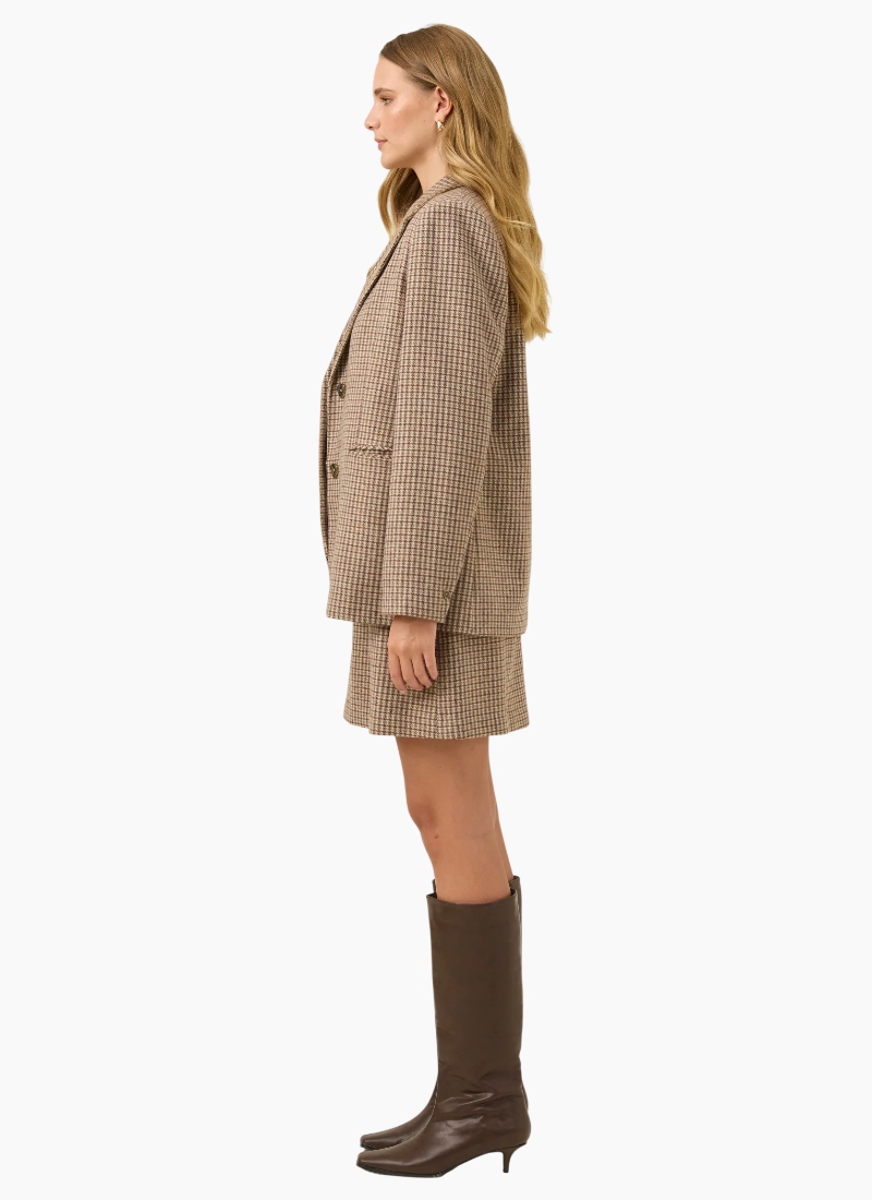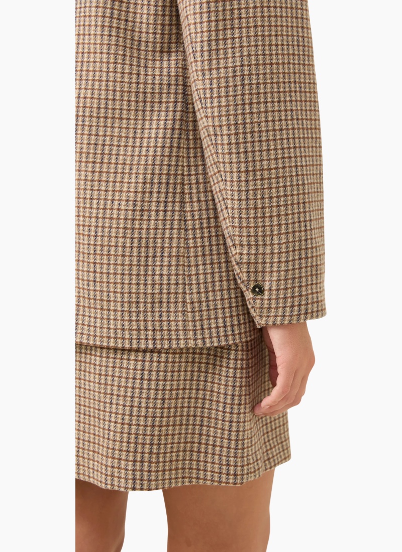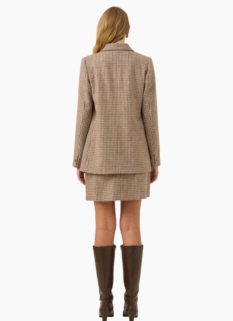A timeless tailored piece, the Cassidy Blazer brings effortless polish to any outfit. Crafted in classic houndstooth suiting fabric and fully lined for comfort, it features a notched lapel, diamond-shaped front buttons and subtle shoulder padding for a softly structured fit. Style it as a set with the Cassidy Vest and Cassidy Skirt for a refined look, or pair with denim for an easy everyday outfit. Features Classic houndstooth suiting fabric Notched lapel Diamond-shaped front buttons Functional welt pockets Button detail on sleeve cuffs Light shoulder padding Fully lined