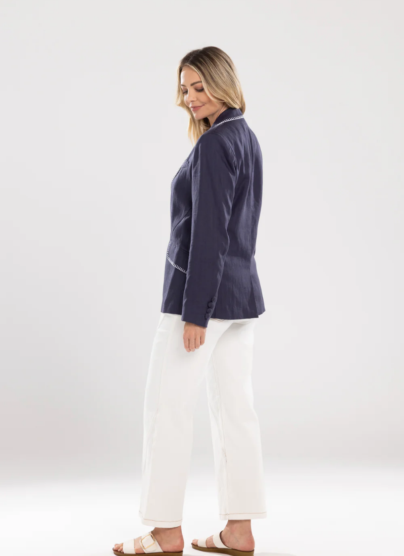 Introducing the Ivy Blazer from Mi Moso. This navy blazer offers effortless polish with a relaxed yet refined silhouette that's perfect for day-to-evening dressing.