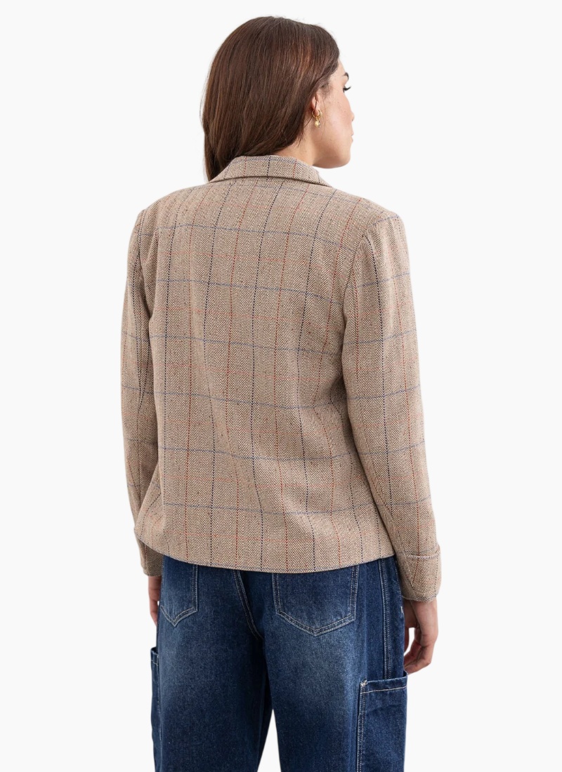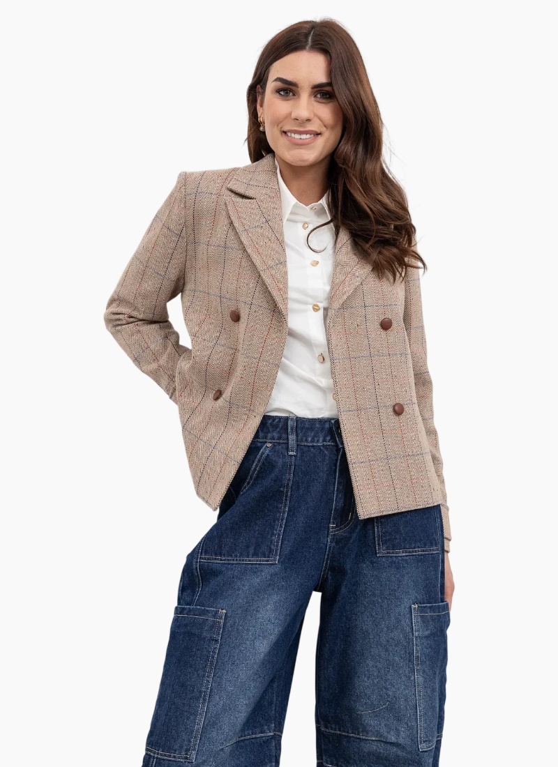 - Soft beige colour with subtle blue and rust windowpane checks for versatile seasonal styling