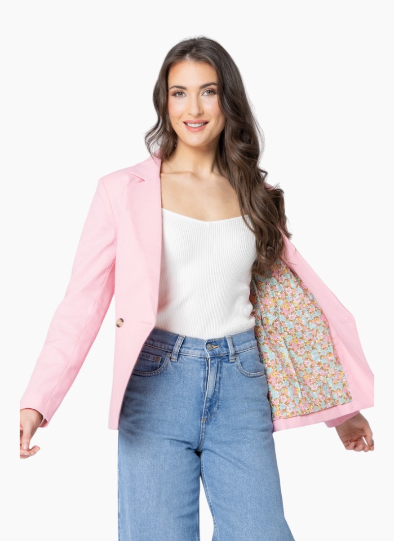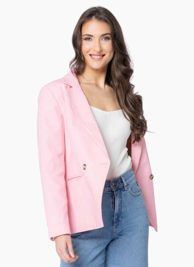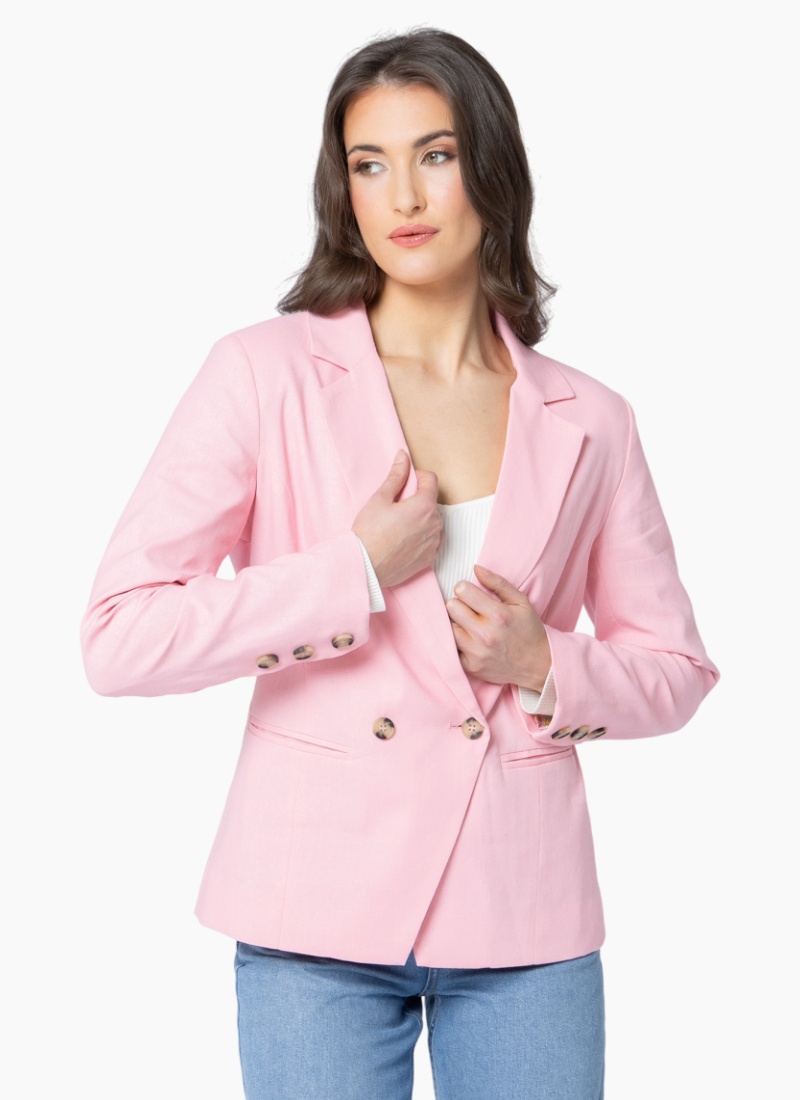 Every closet craves this staple blazer designed in a polished double-breasted silhouette.