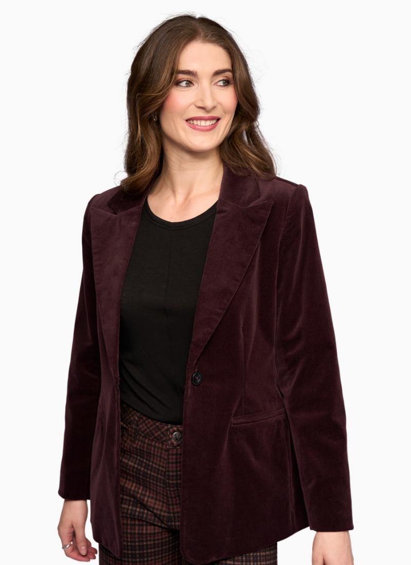 This is a softly tailored cord blazer that adds instant polish without feeling stiff. Easy to dress up or down, it’s a smart layering piece you’ll keep coming back to. Single button front Classic blazer lapel Long sleeves Front welt pockets Corduroy fabric Lightweight structure Standard fit