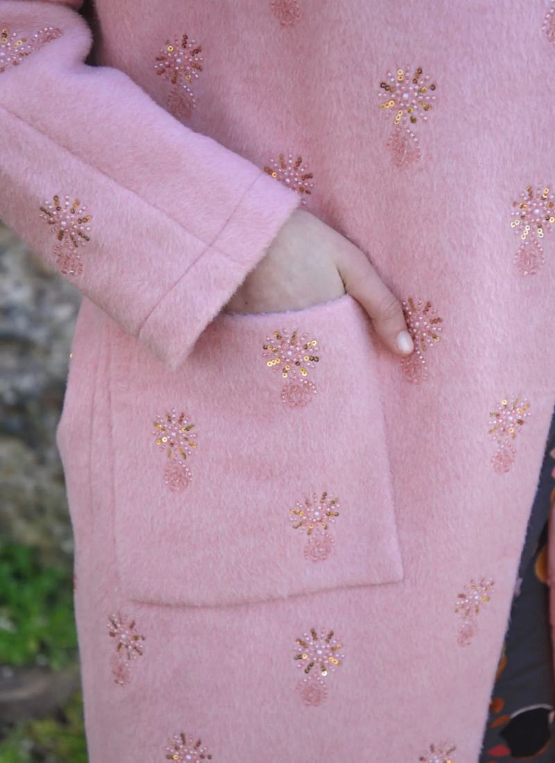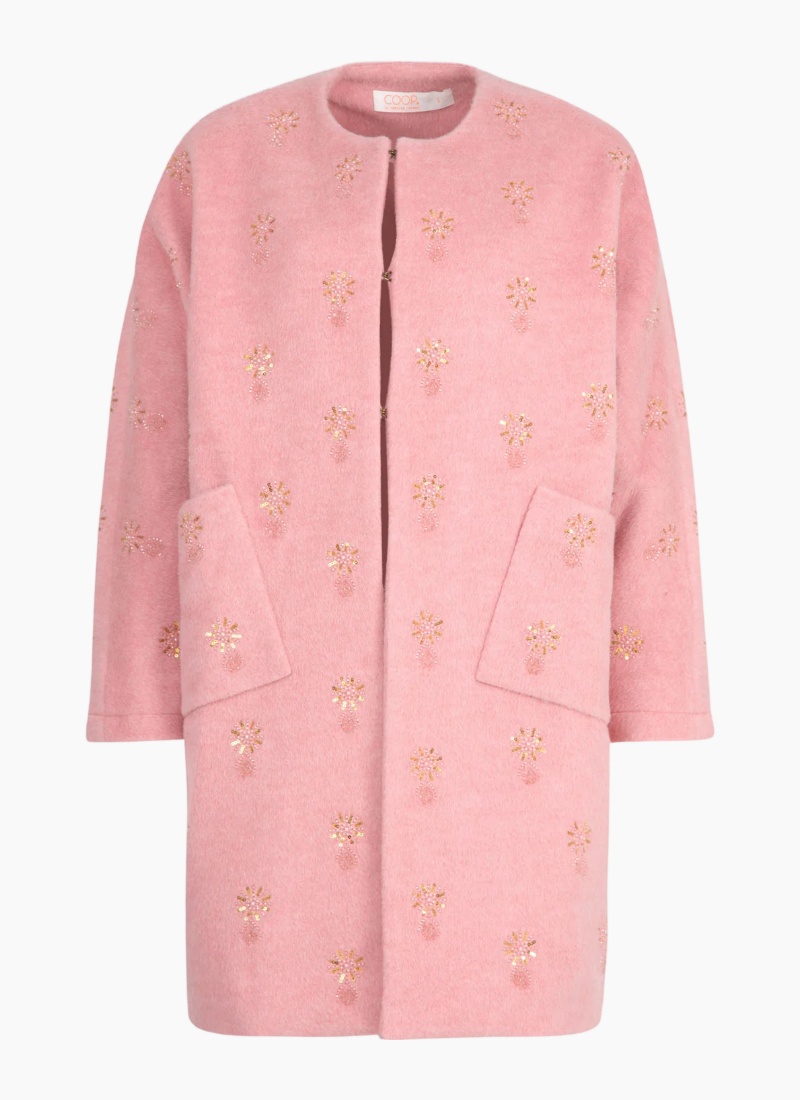 Introducing the BEAD IT Coat - Pink from COOP. This statement piece pairs soft pink colour with delicate beaded detailing for an effortlessly feminine finish.