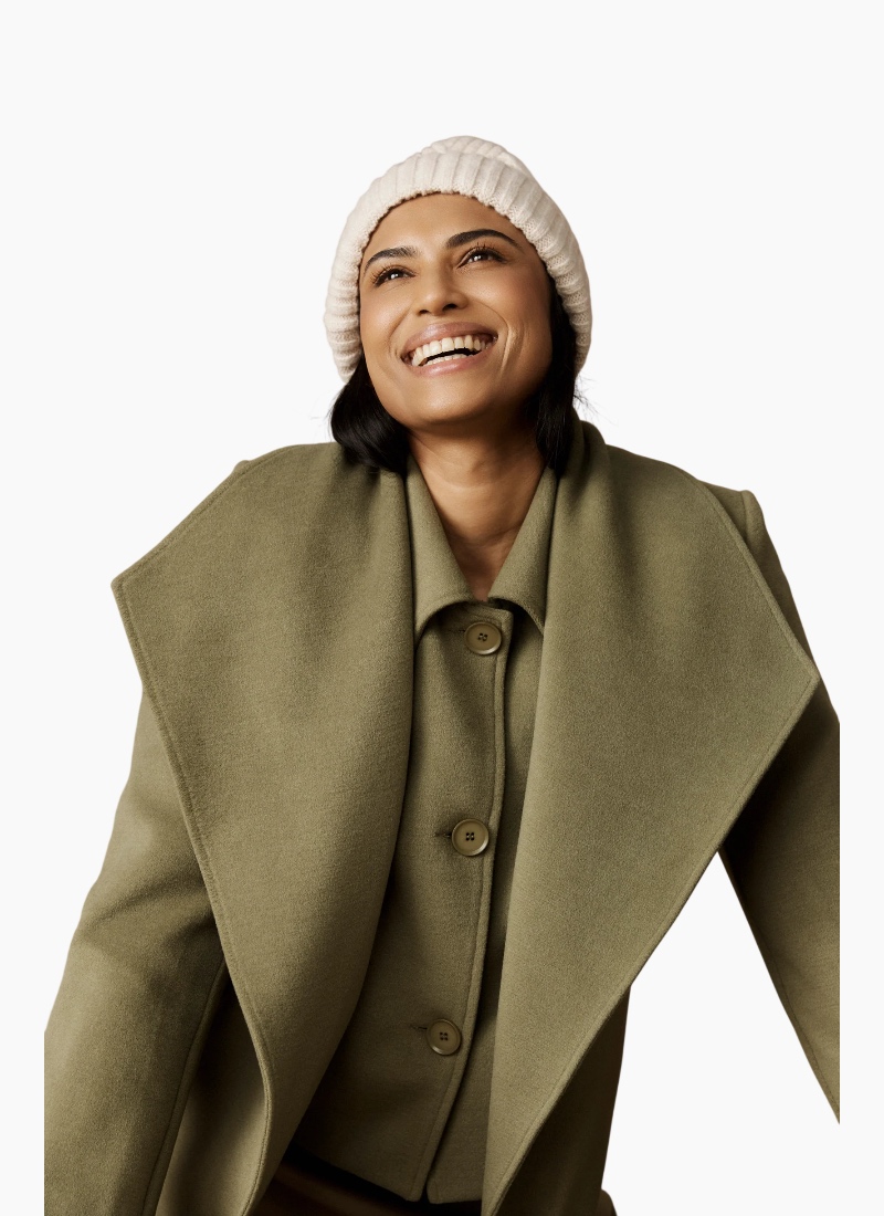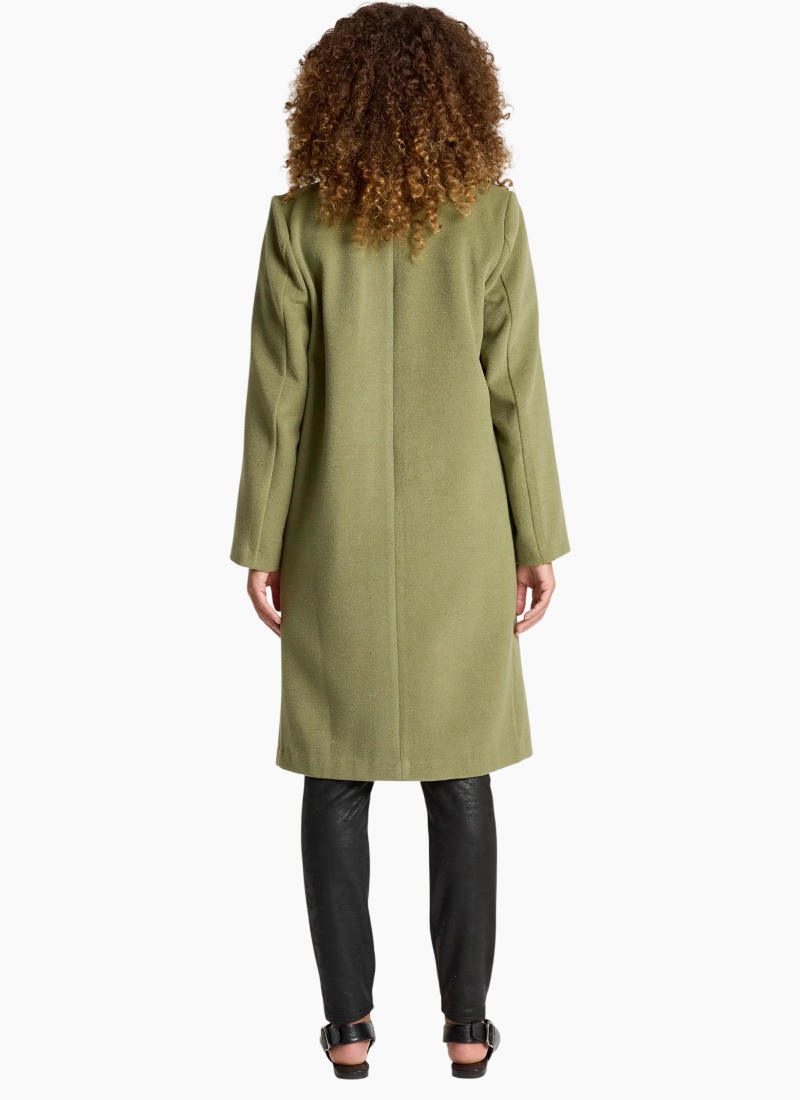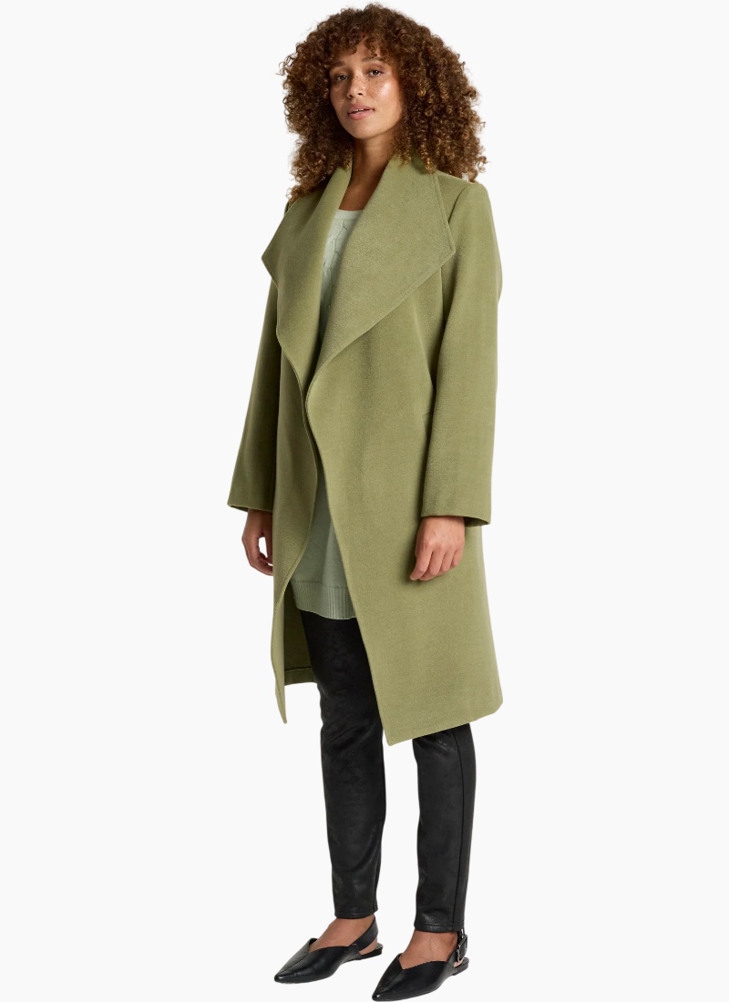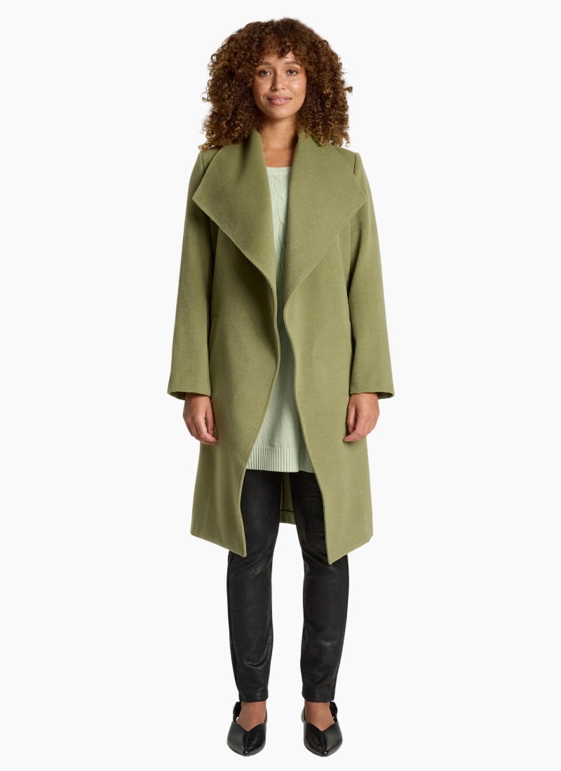 A relaxed longline coat designed to become a winter favourite. Featuring a waterfall collar and soft drape, this elegant style offers warmth, comfort and an effortlessly flattering silhouette. Easy to style for both work and evening wear, it layers beautifully over everyday outfits while adding a polished finish. Design Features Longline coat silhouette Waterfall collar Soft drape for an effortless fit Side pockets Wool-look fabrication
