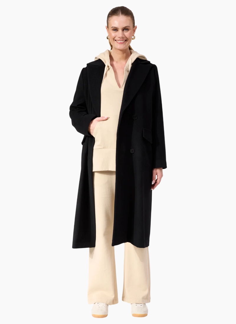 Chicago Coat A bold winter coat with timeless appeal, the Chicago Coat features a structured double-breasted silhouette with classic lapels and a flattering longline shape. Crafted from a warm wool-blend, it’s the perfect statement layer for cooler days, effortlessly styled over denim, knits, or dresses. Polished yet relaxed, it’s a versatile coat that brings a refined edge to everyday outfits. Features Notched collar and lapel Double-breasted front Side flap pockets Back vent at hem Structured longline silhouette