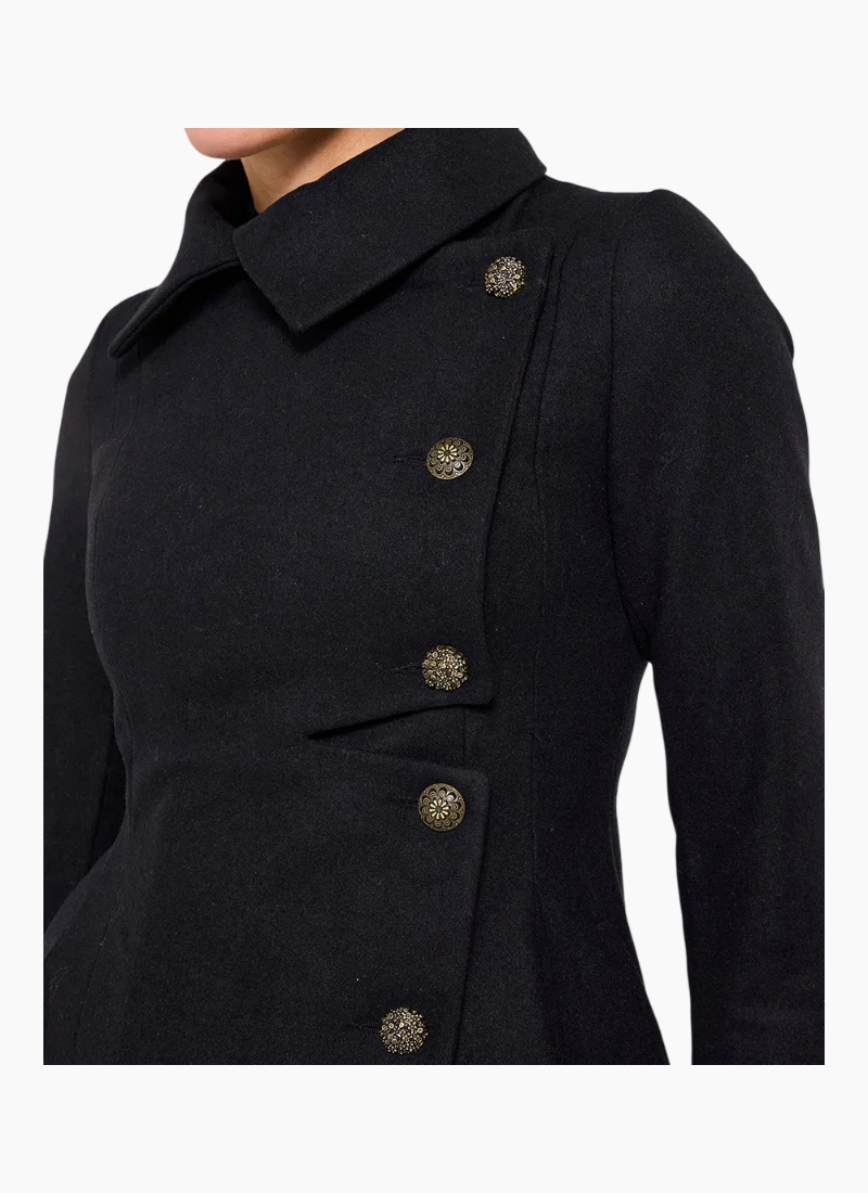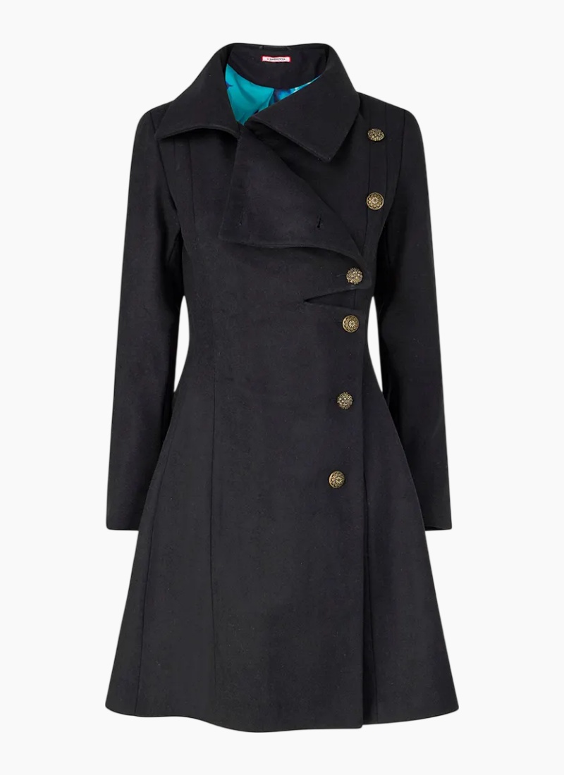 This chic black coat is a wardrobe must done the Joe Browns way. With refined flair in the oversized collar and unique button detail, it'll pair with absolutely anything. Whether it's adding a smart touch to jeans or a sophisticated finish to skirts, it'll keep you snug in style. Statement coat Unique button detail Versatile black colour Striking oversized collar Stylish wide hem Approx. Length: 90cm (35.4") Shell: 78% Polyester, 10% Wool, 6% Acrylic, 6% Polyamide, Lining: 100% Polyester Dry Clean Only