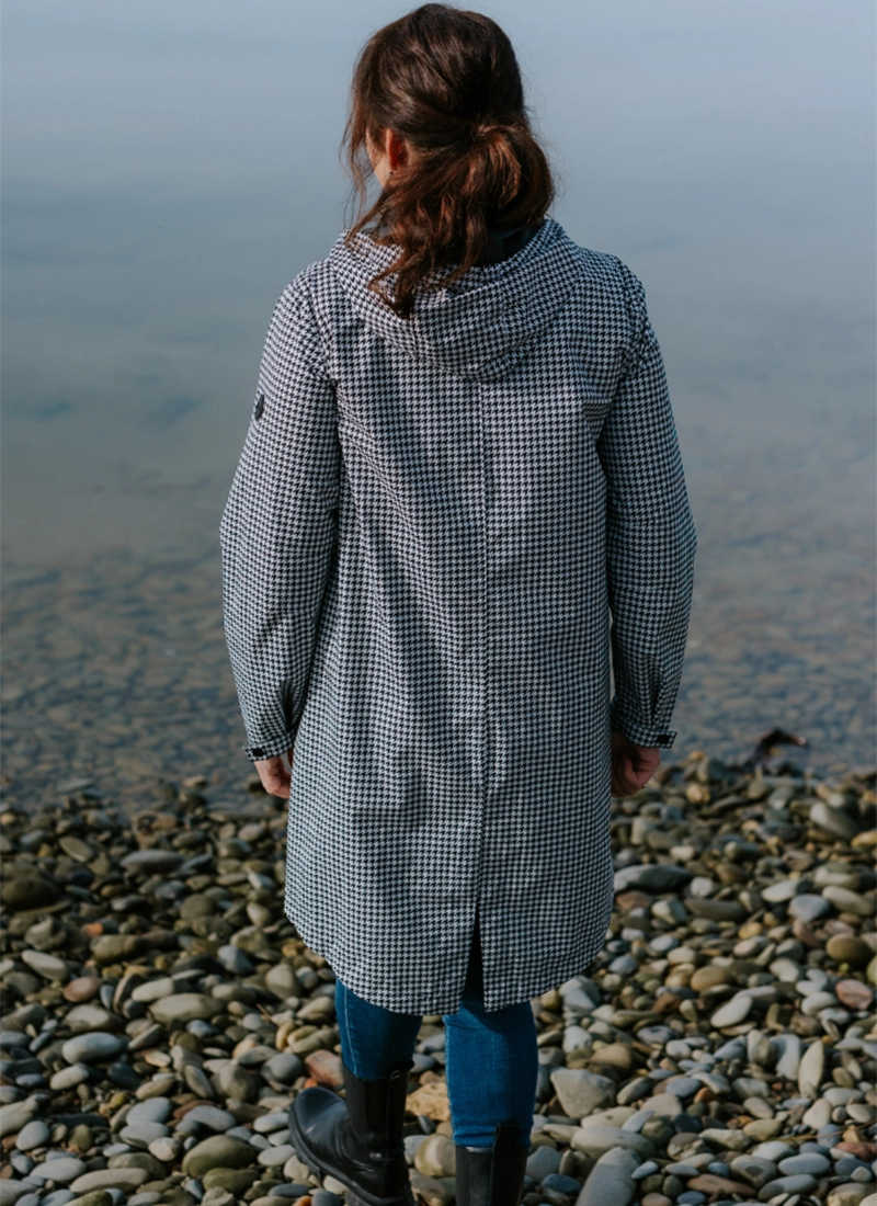 A 3/4 length fully waterproof seam-sealed rain coat. Featuring an exaggerated shirt-tail hemline, matte black hardware, 2 front zip pockets and a handy drawstring hood. Trust us; this is the easy layer you'll be throwing on over just about everything and better still, it packs down nice and small to pop in your handbag for those 'just in case' days!