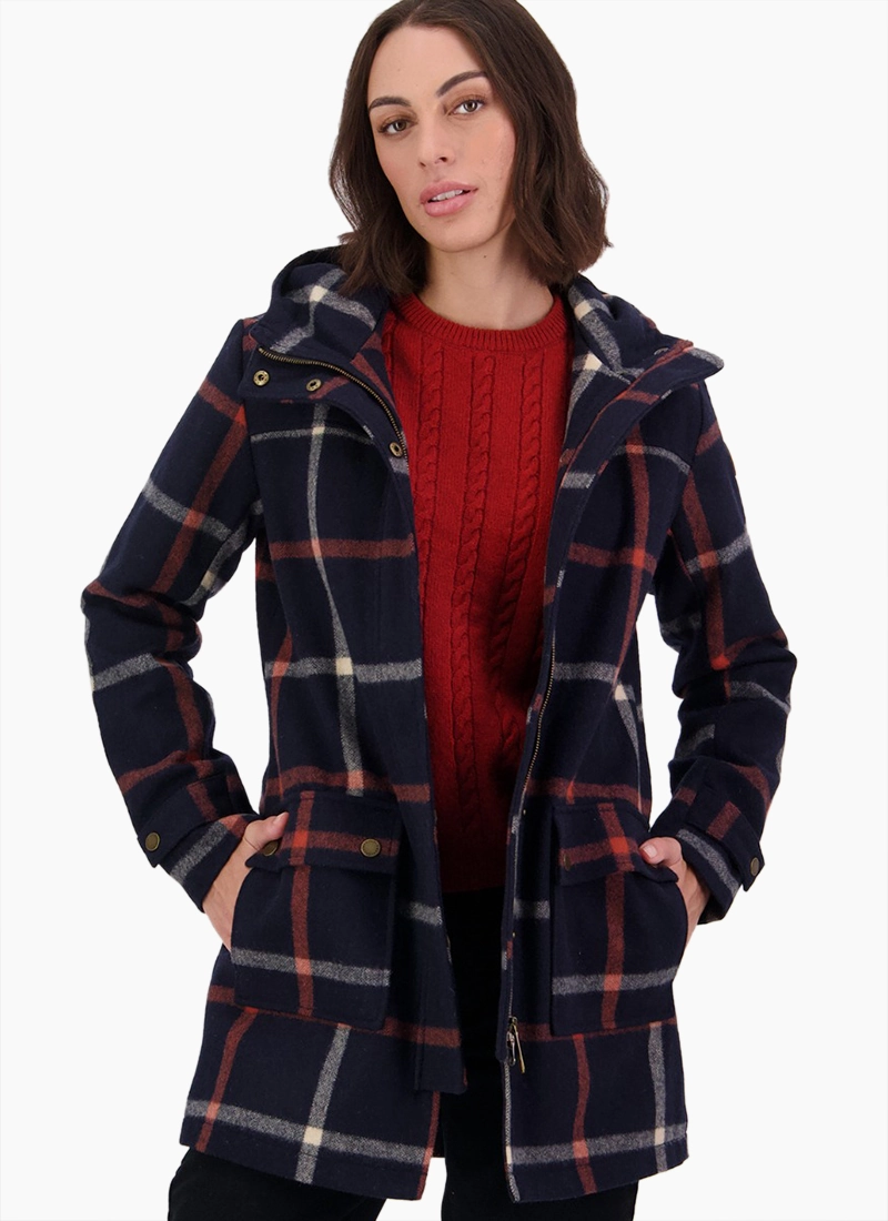 Our Women's Annmore Wool Overcoat, crafted from a blend of pure NZ wool and merino, is warm and sophisticated. With a 400gsm outer layer, it's designed to keep you warm. Its 100% cotton twill lining ensures comfort against the skin, making it a pleasure to wear. Featuring an oversized hood and with an outer layer made with 100% ZQRX ethical wool, our women's overcoat will provide extra protection from any harsh weather conditions. Our Annmore Wool Overcoat also features adjustable cuffs allowing a custom fit, ensuring that warmth is sealed in and cold is kept at bay. The Annmore Wool Overcoat is true-size for minimal layering, but also designed with the option to size up, it accommodates additional layers underneath, making this women's hooded overcoat versatile for varying temperatures. Made with 100% premium New Zealand grown ZQRX wool, our Annmore overcoat is a heavy-weight winter coat offering unmatched durability and insulation.