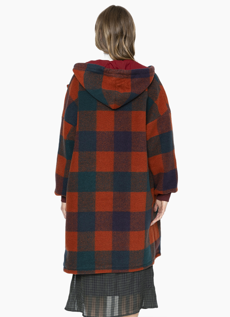 Stay warm and stylish this winter with our Valor Coat. Featuring a super cosy hoodie, convenient pockets and ribbed cuffs for extra warmth, this long coat will be your go-to for those chilly days. So stay snug and look great in this bold checkered print.