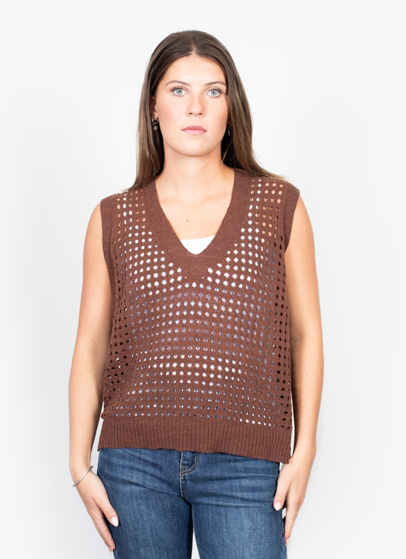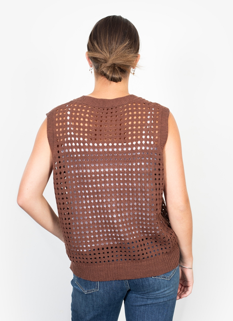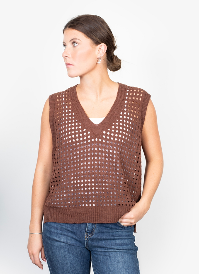 Very cool vest from Antler NZ in Navy In the current holey knit look - its very fun! Has a little bit of give, just a O/S which would fit an 8-12 easy. 100% Acrylic Available in Navy or Raisin