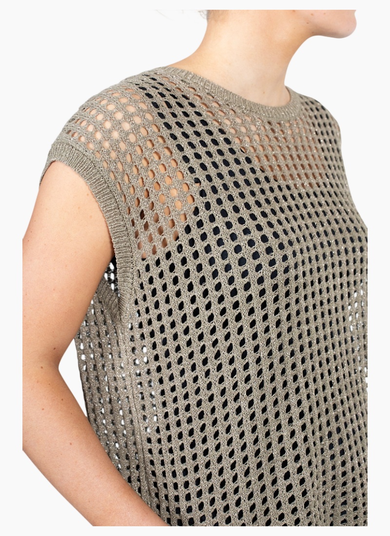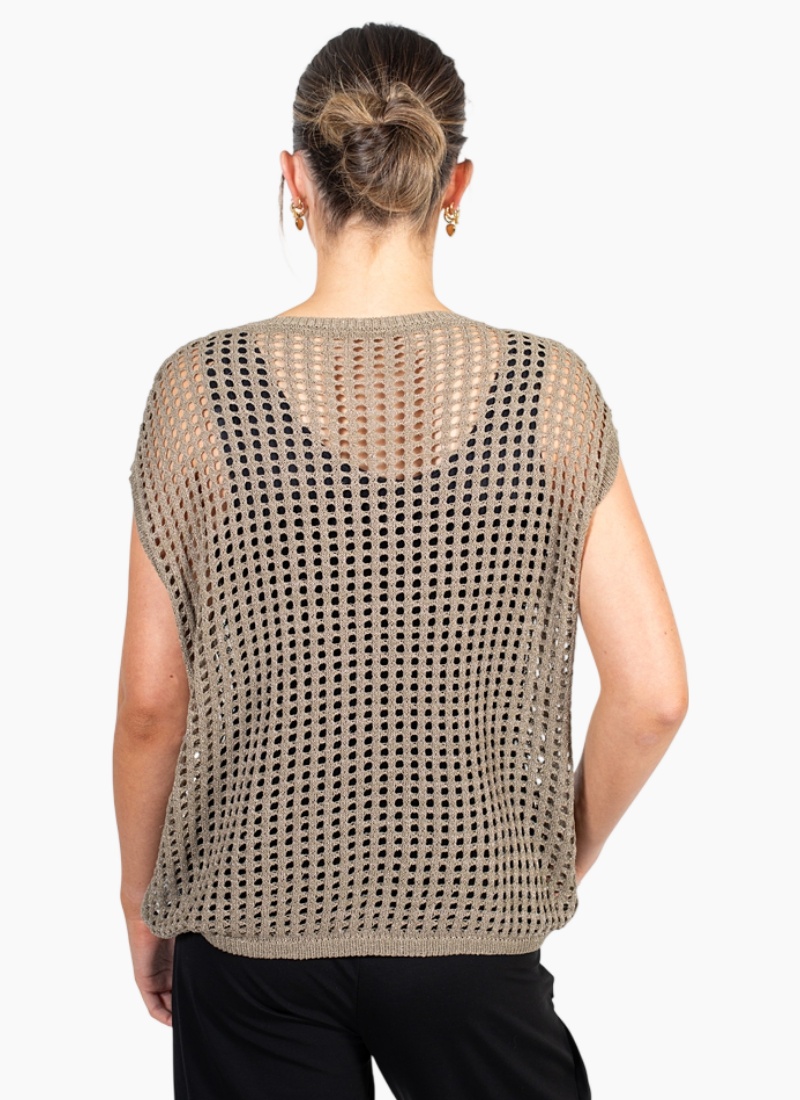 The Chelsea Vest features an open weave and a relaxed silhouette, making it the perfect throw on for warm summer days. Woven with subtle gold lurex for just a hint of shimmer, it’s an easy one size style that layers beautifully over everything from swimwear to a simple tank and jeans.One Size