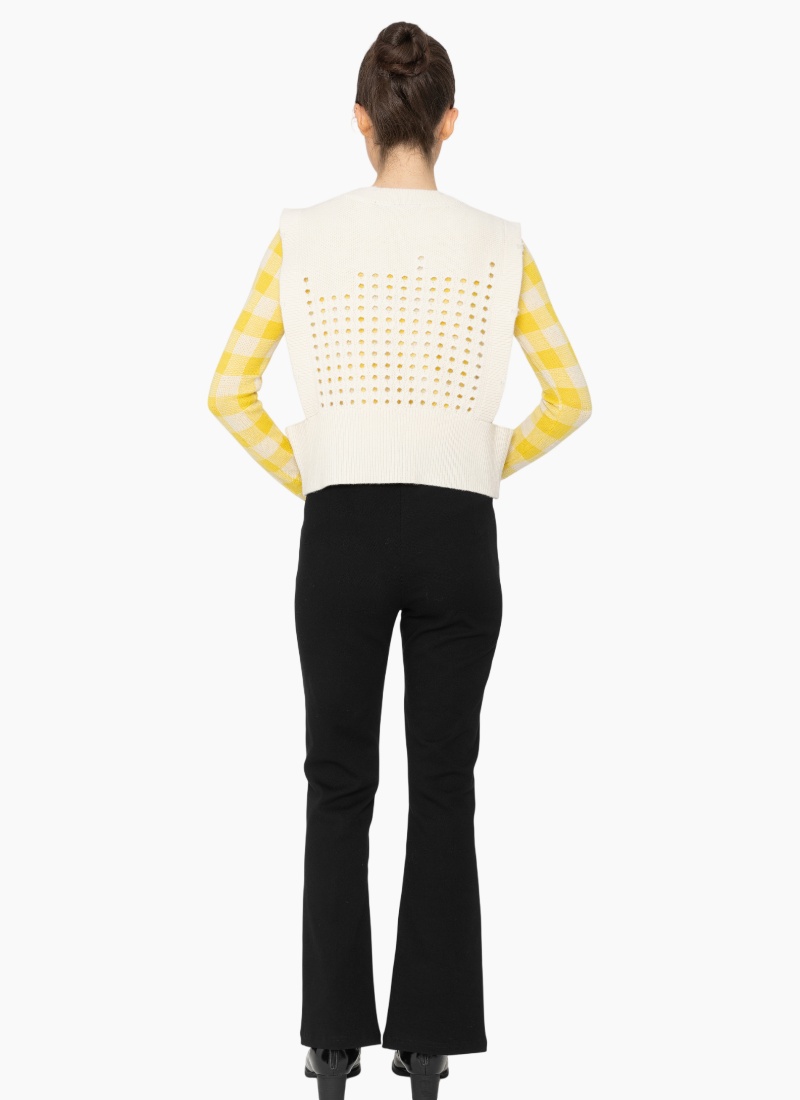 - Sleeveless Vests silhouette ideal for layering over shirts, tees or lightweight knits