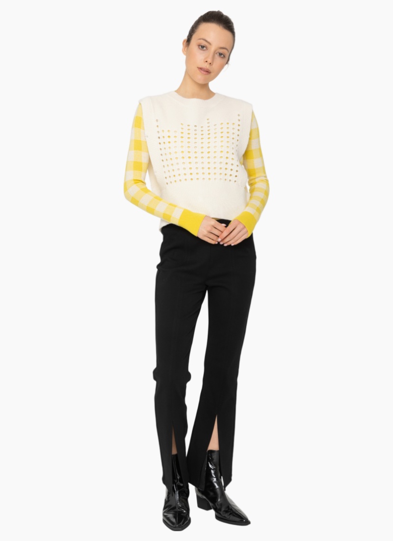 - Winter White from Blacklist. This modern knit layering piece brings sculptural shape and tactile detail to your wardrobe.