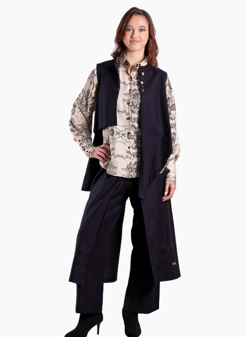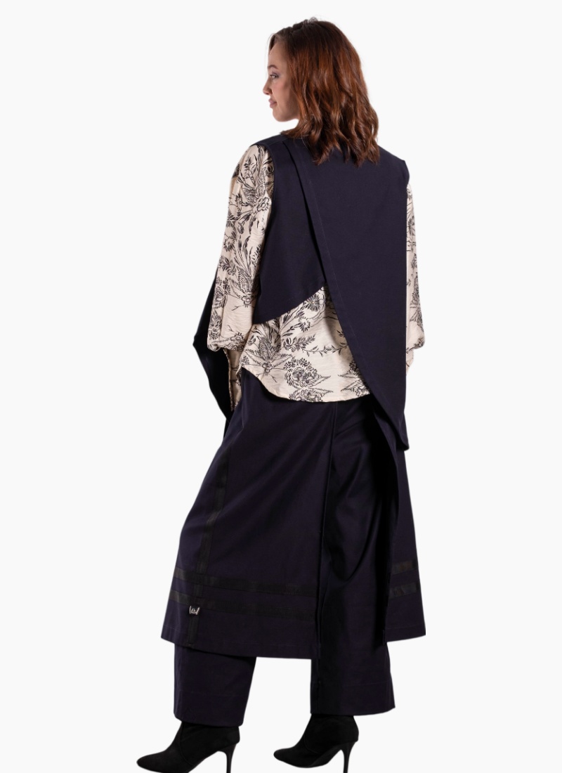 Introducing the Frankie Vest — Navy from Deanne Hobbs. This longline vest brings refined tailoring and effortless layering to your wardrobe.