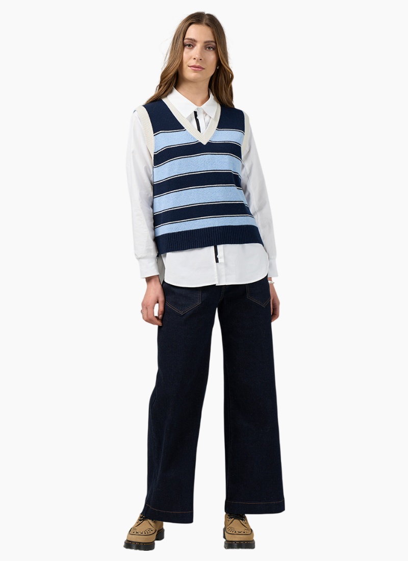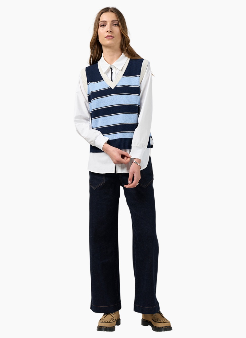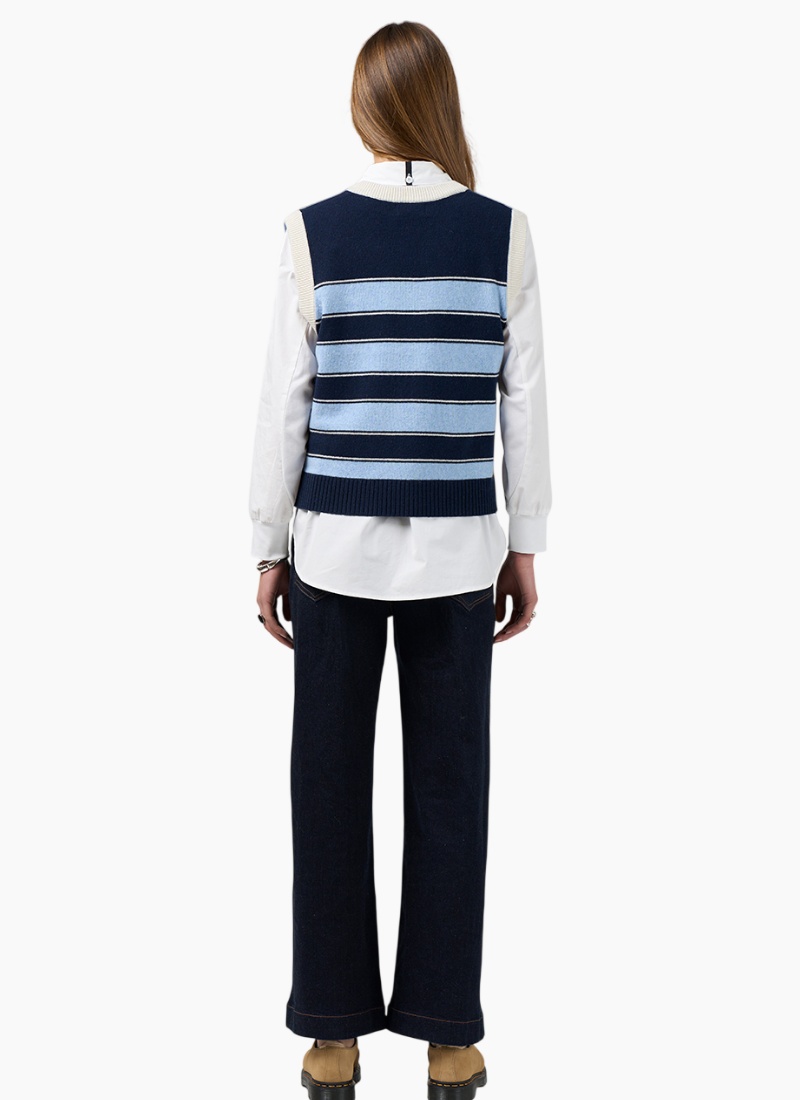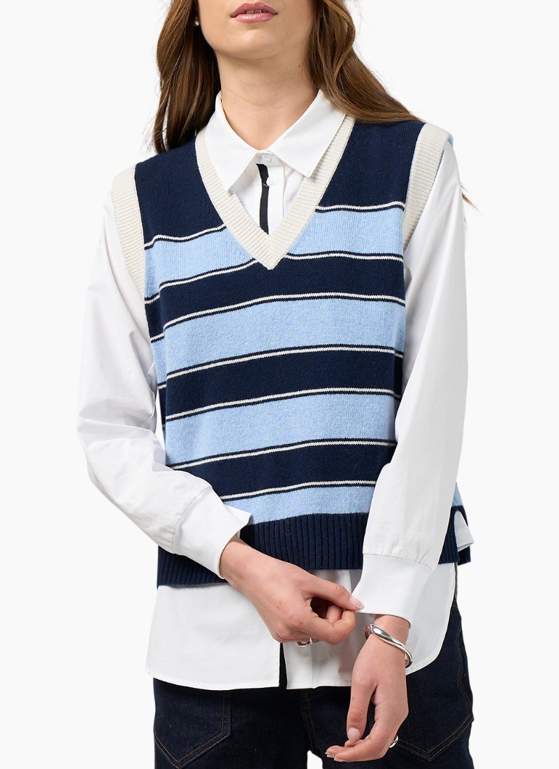Striped V-neck vest in a super soft merino-cotton blend, featuring ribbing detail around neckline, cuffs and hem. Perfect for layering.