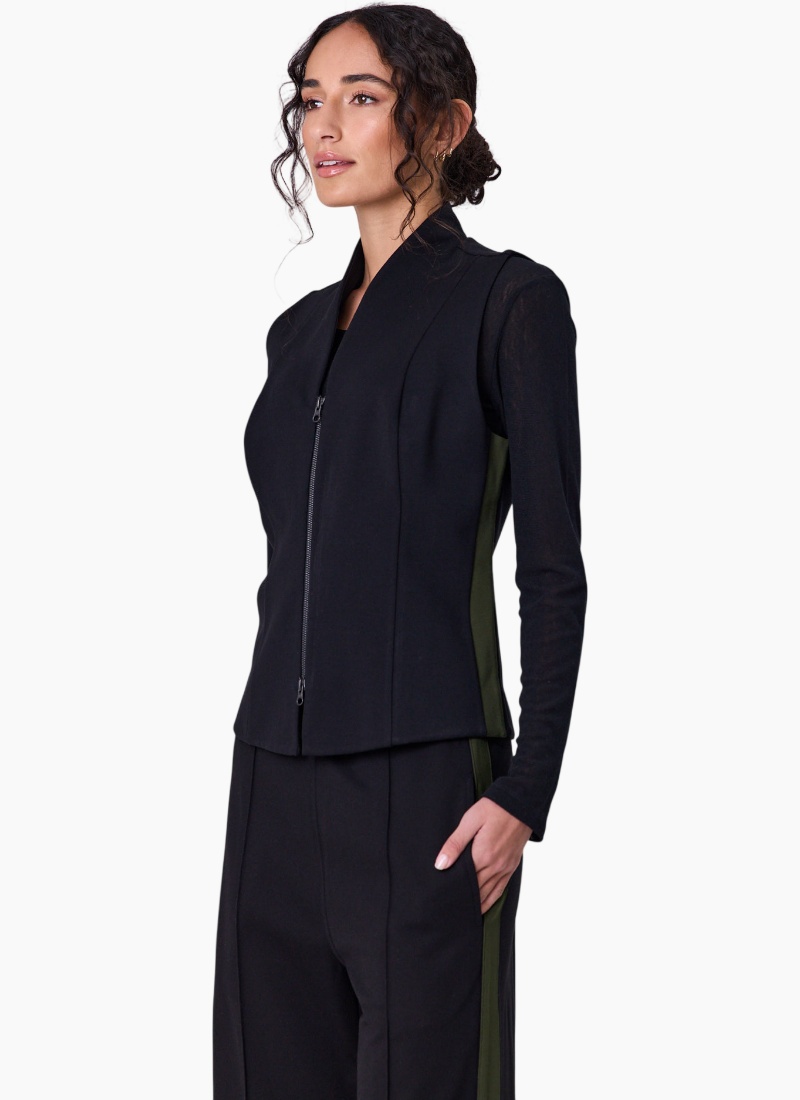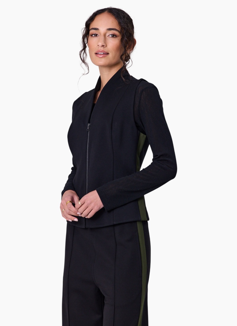 - Centre zip and panel detailing create a contemporary, structured silhouette