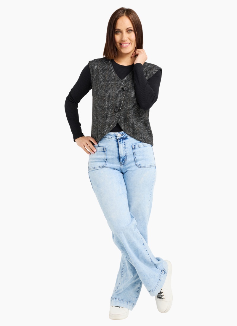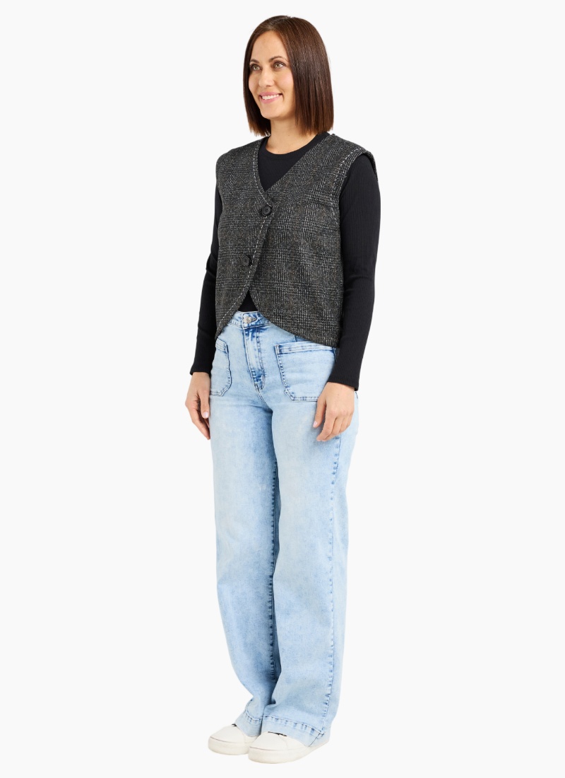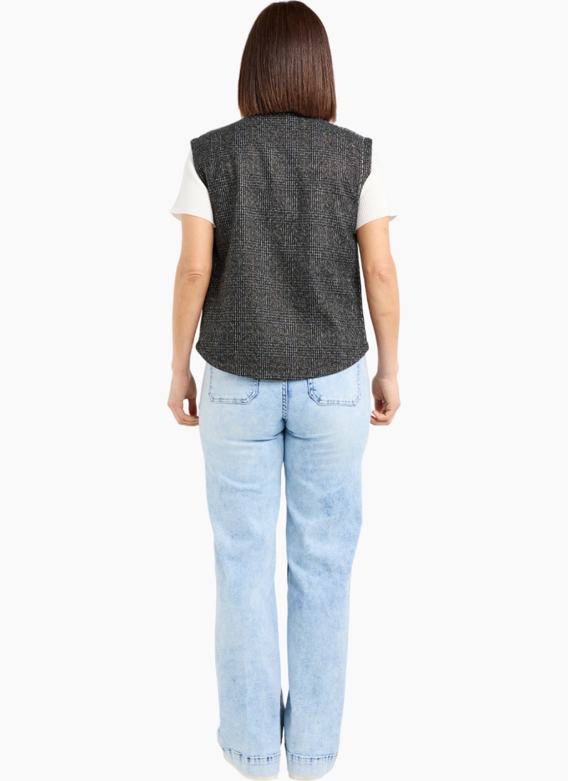 This stylish vest features an asymmetric button-up closure that adds a modern twist to a classic winter layer. Perfect for slipping over your favorite tops, it offers a touch of extra warmth without compromising on style. Cute, versatile, and effortlessly chic, it elevates any cold-weather look. 70% Polyester 15% Wool 15% Rayon