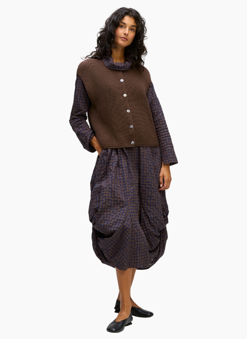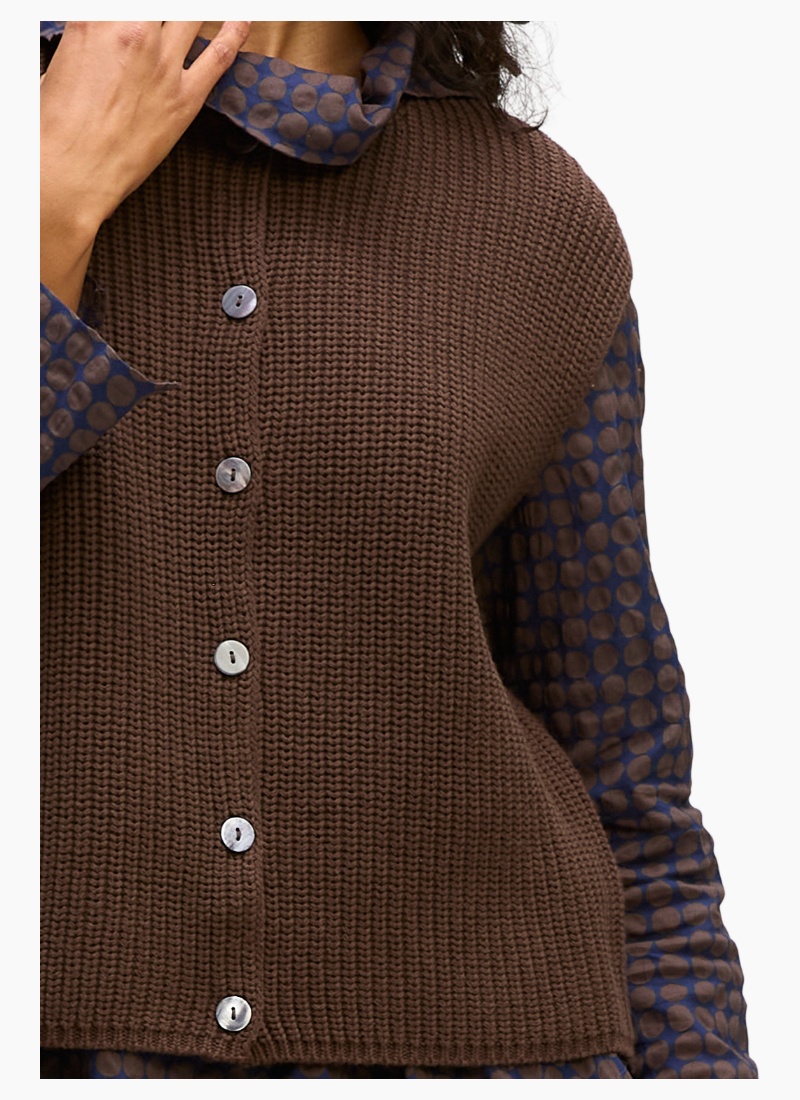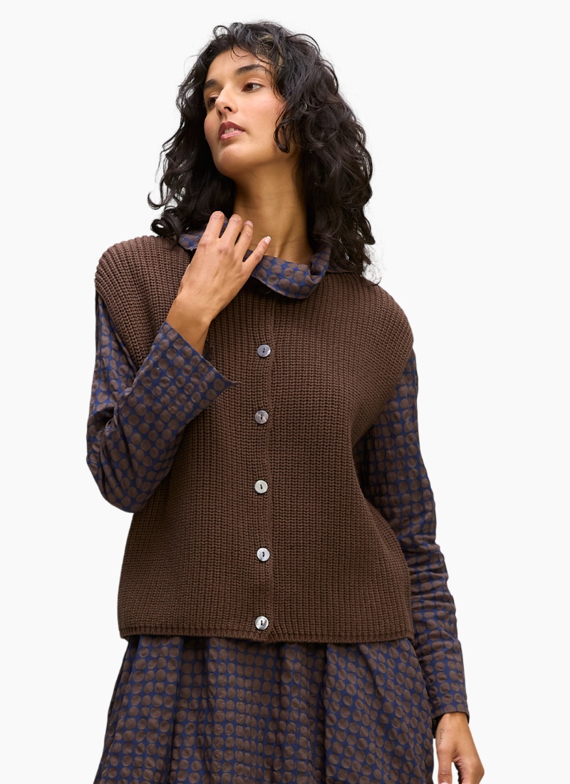 Introducing the Ribbed Vest-Dk Brown from Zaket & Plover. This elegant, rib-knit layering piece brings cosy texture and quiet polish to any outfit.