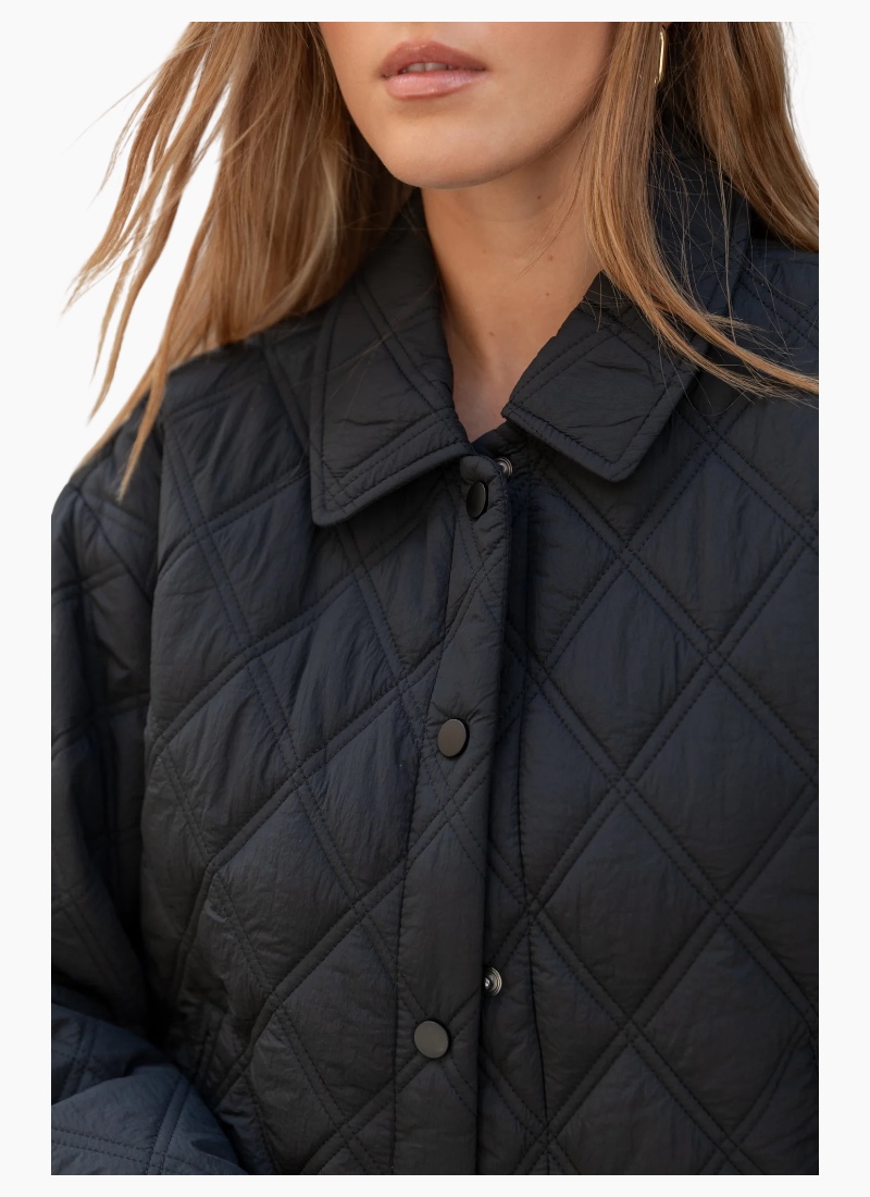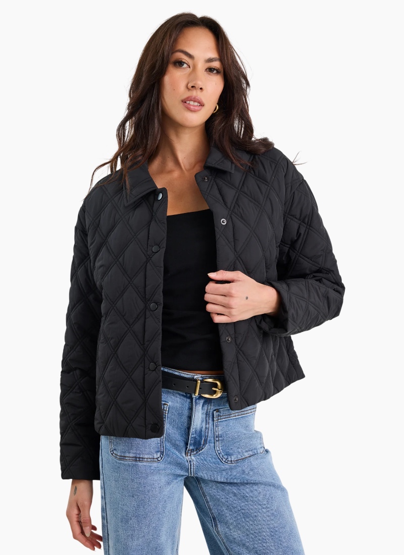 Your go-to outer layer for effortless everyday style. The Absolute Jacket combines a relaxed silhouette with a softly structured quilted finish, giving you warmth without the bulk. Designed in a rich chocolate tone, it’s an easy piece to throw on over denim, dresses, or your favourite knit. Timeless, versatile, and made for real life. Details Soft diamond quilted texture Lightweight warmth without feeling heavy Button front with classic collar Relaxed fit for easy layering Fully lined for added comfort Size & Fit Relaxed fit True to size Model wears size 8 Model height: 180cm (Bust 81cm, Waist 61cm, Hips 87cm)