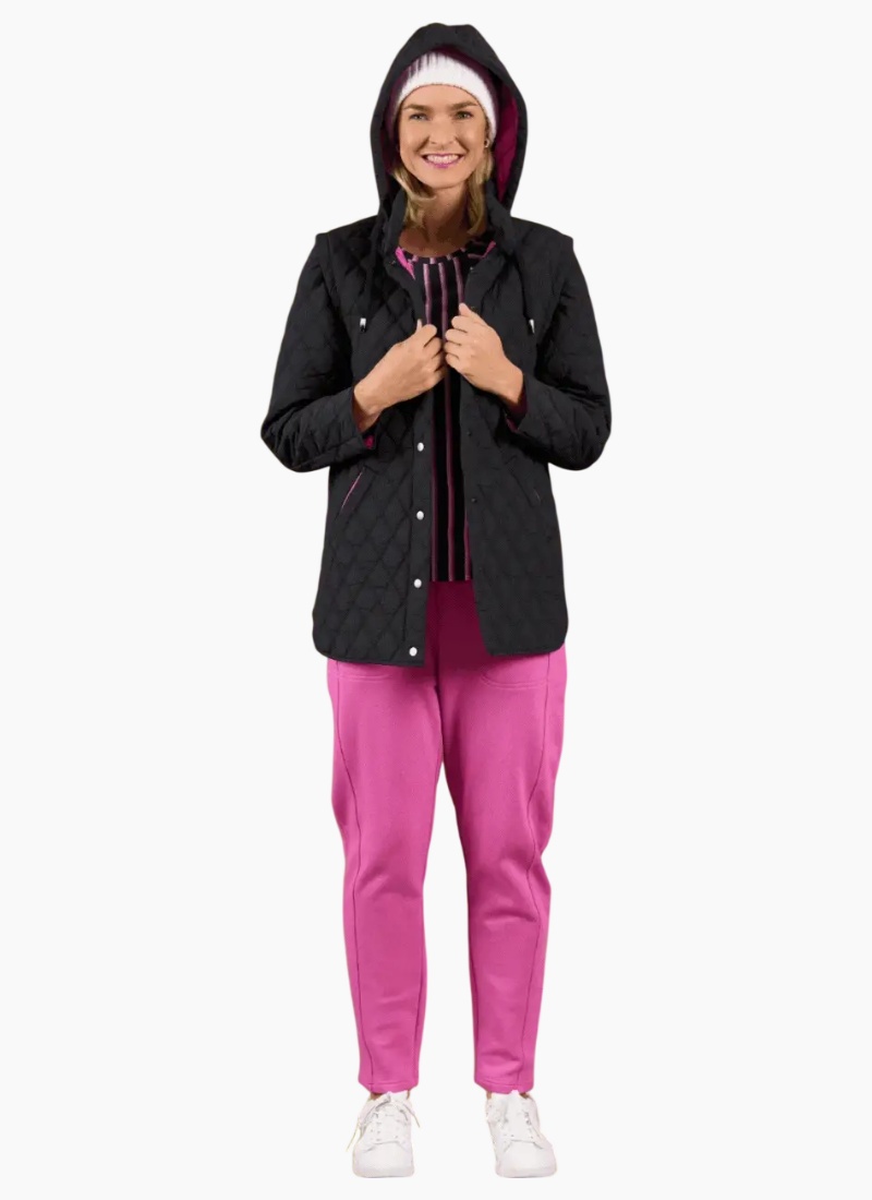 Introducing the Charlie Jane Wellington jacket-Black. This chic, versatile quilted jacket combines practical warmth with playful contrast detailing.