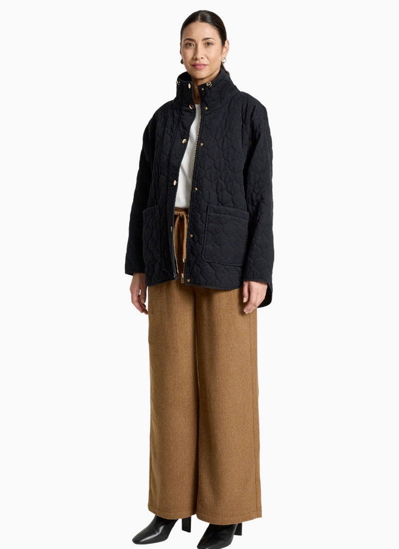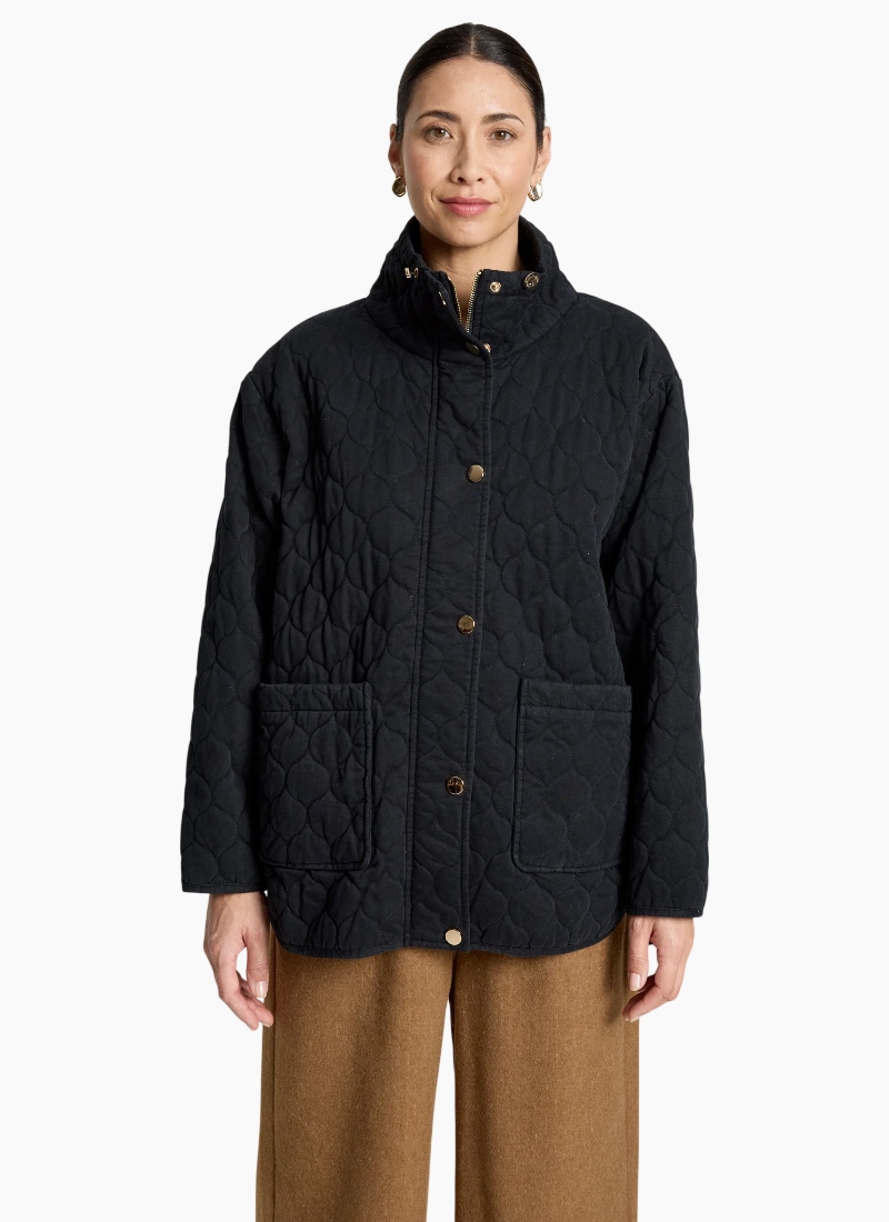Introducing the Sansi Quilted Jacket from Eb&Ive. This timeless black quilted jacket combines cosy insulation with a clean, modern silhouette.