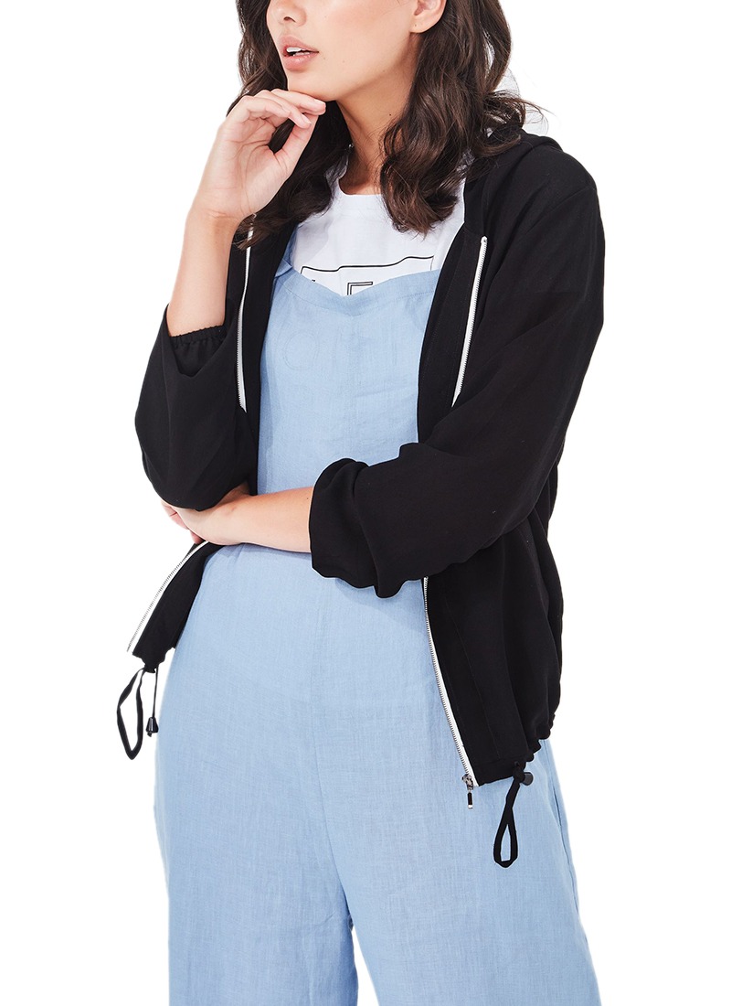 The Venus jacket is made from a soft viscose perfect for that mid-season layering. With a zip front fastening and adjustable tie waistband for that flattering fit. Features a fixed hood for relaxed styling and long sleeves with practical pockets. This piece will take you from weekdays to weekends.