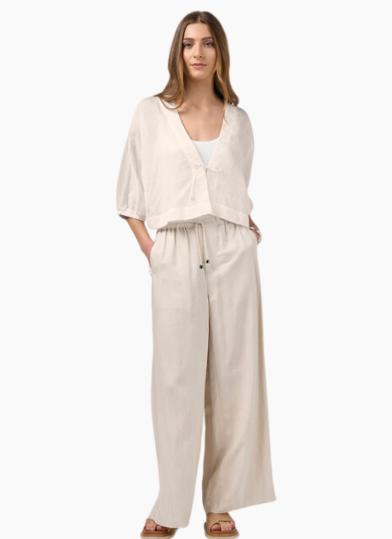 Introducing the Veil Jacket from Madly Sweetly. This airy, boxy jacket in Chalk colour is crafted from breathable linen for effortless layering.
