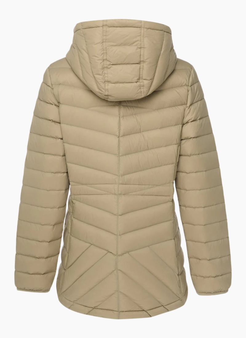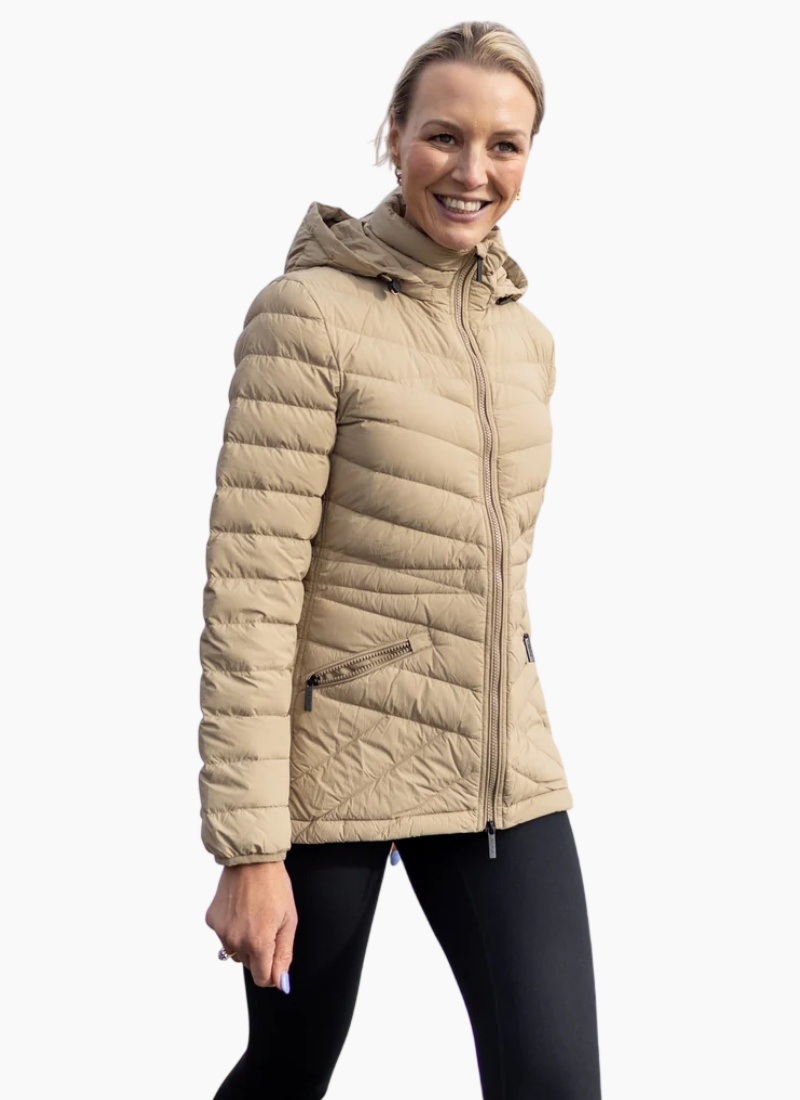 Lightweight, warm, and effortlessly wearable, the Cushla Down Jacket is a packable puffer designed for everyday layering and travel. Built with the same trusted construction and warmth as Moke’s much-loved Mary-Claire Vest - now with sleeves - Cushla delivers dependable insulation in a sleek, flattering silhouette. Filled with premium 90% duck down and 10% waterfowl feathers, the Cushla Down Jacket is engineered with Moke’s signature warmth-to-weight ratio, keeping you cosy without the bulk. With an approximate 580 fill power, it offers reliable warmth across seasons, making it ideal for daily wear, commuting, and cooler days in New Zealand and Australia. Thoughtfully designed with a tapered waist for shape and a high-low hem for added coverage, Cushla balances comfort and style with ease. The refined quilted design adds subtle texture, while the lightweight construction ensures it layers effortlessly over tees and knits or under heavier coats when temperatures drop. Finished with practical details including adjustable drawcords at the hood and hem and a packable design with its own compact storage bag, the Cushla Down Jacket is made for life on the go. Lightweight, warm, and endlessly versatile, it’s a modern wardrobe essential you’ll reach for season after season. Designed in New Zealand. Made for women living life across New Zealand and Australia.