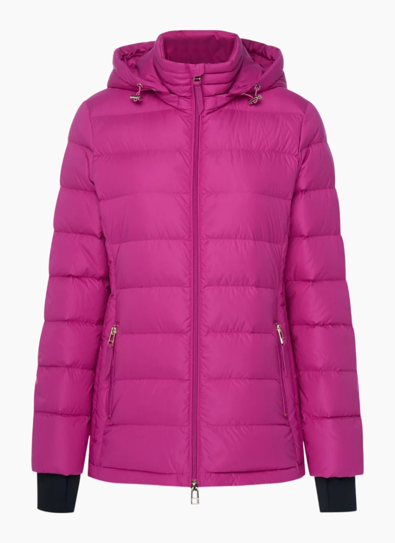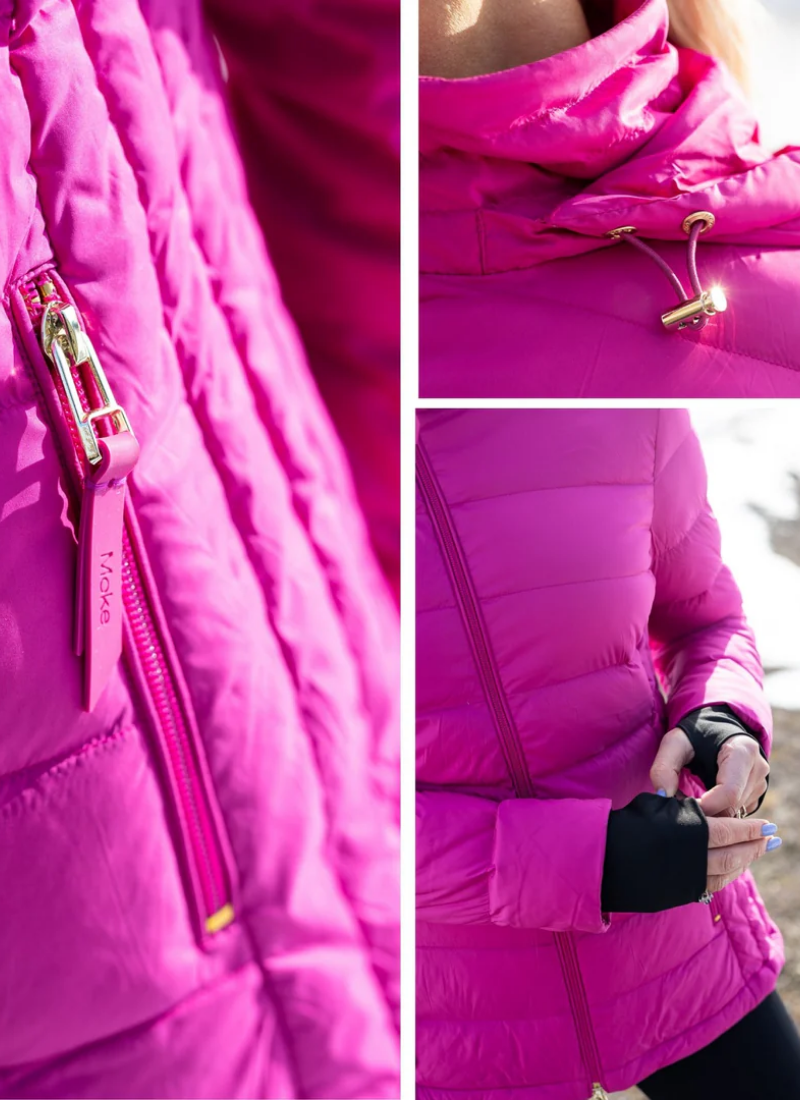 Introducing the LUCY Puffer Down Jacket from Moke. This lightweight women's jacket in vibrant fuchsia balances snug warmth with a modern, city-ready silhouette.