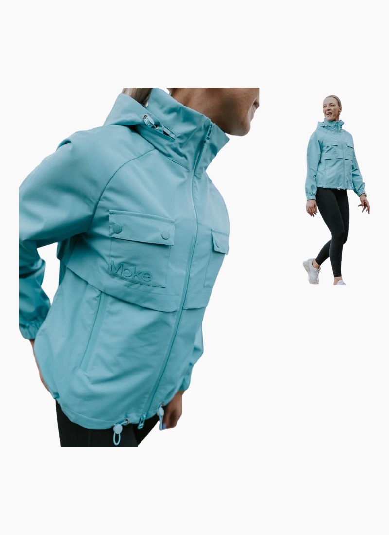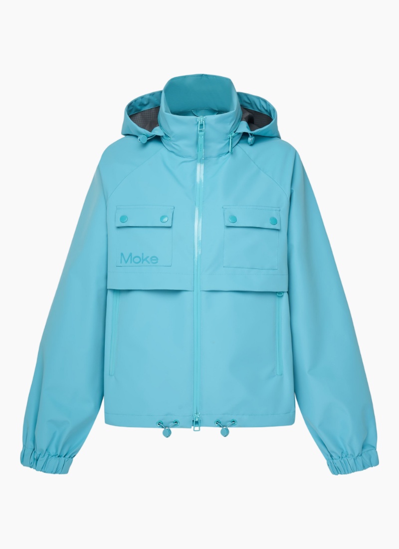Women’s short rain jacket with a modern, sporty silhouette 10,000mm waterproof rating for protection from everyday rain 5,000g breathability rating for comfortable, breathable wear Durable waterproof outer with a matte, fashion-forward finish Exposed waterproof zip tape for a technical, utilitarian edge Short length for lightweight wear and easy layering Functional chest pockets for everyday essentials Cinched hem for adjustable fit and shape Designed for light to moderate rain and urban wear Designed in New Zealand