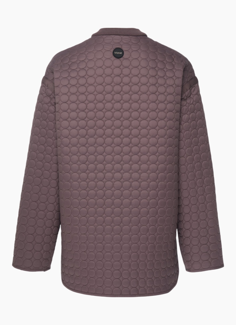 - Distinctive circular quilt stitching and a subtle ribbed neckline with a discreet Moke badge for refined detail