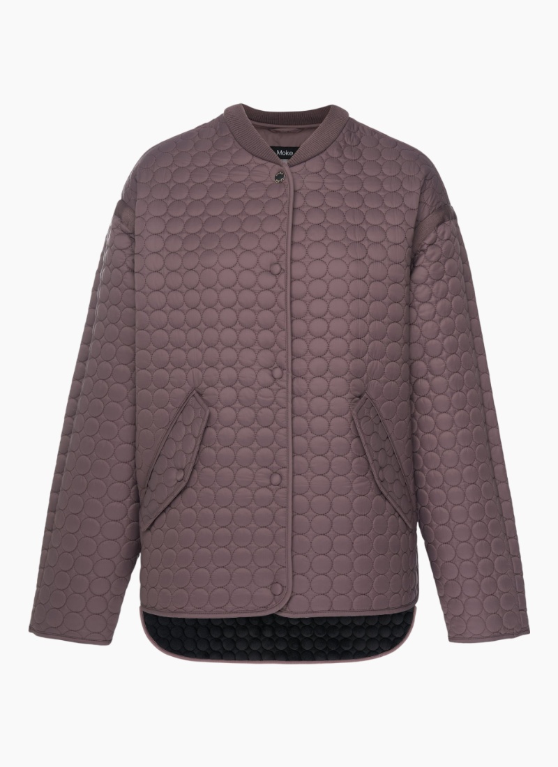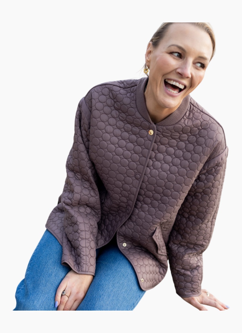 Introducing the Tilly Quilt Bomber-Cocoa from Moke. This contemporary quilted jacket combines cosy warmth with a clean, modern silhouette.