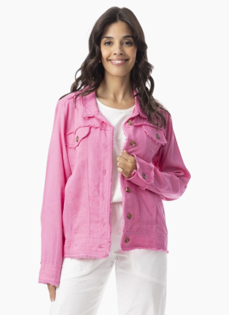 Introducing the Linen Essential Jacket Pink from Orientique. This lightweight women's jacket offers effortless style and breathable comfort.