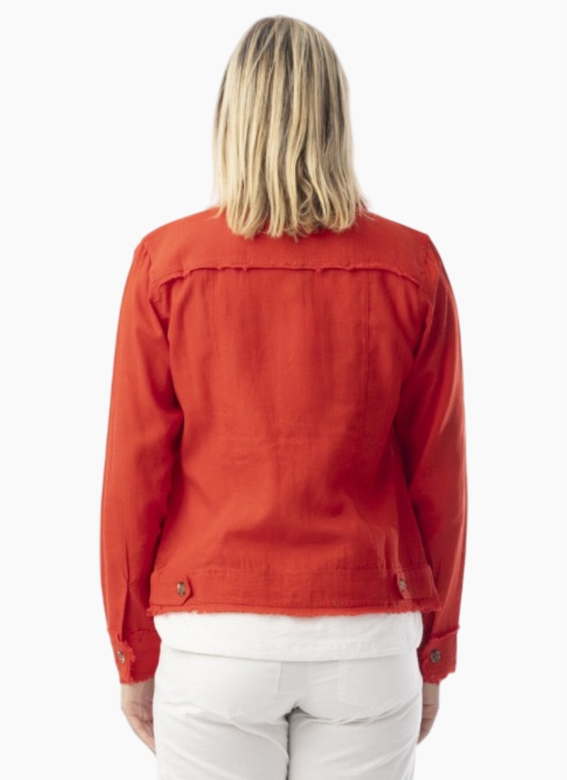 Introducing the Orientique Linen Essentials Jacket Red. This breezy linen jacket adds a polished yet relaxed note to your wardrobe.