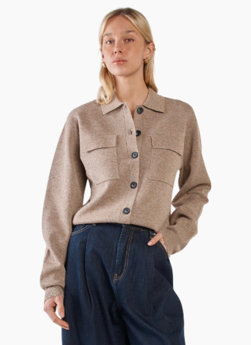 Introducing the HOLLIAN KNIT JACKET from SASS. A refined knit jacket that blends cosy texture with clean, tailored details for effortless everyday style. The Holliann Knit Jacket blends soft structure with everyday ease. Mock horn buttons and chest pockets add a polished, tailored feel, while rib trims maintain comfort. The dropped shoulder keeps it effortless and relaxed. A trans-seasonal outer layer with elevated versatility.