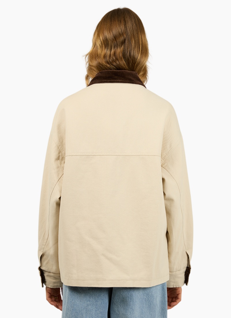 - Crafted from durable cotton twill with contrasting brown corduroy collar and cuff trim for subtle texture