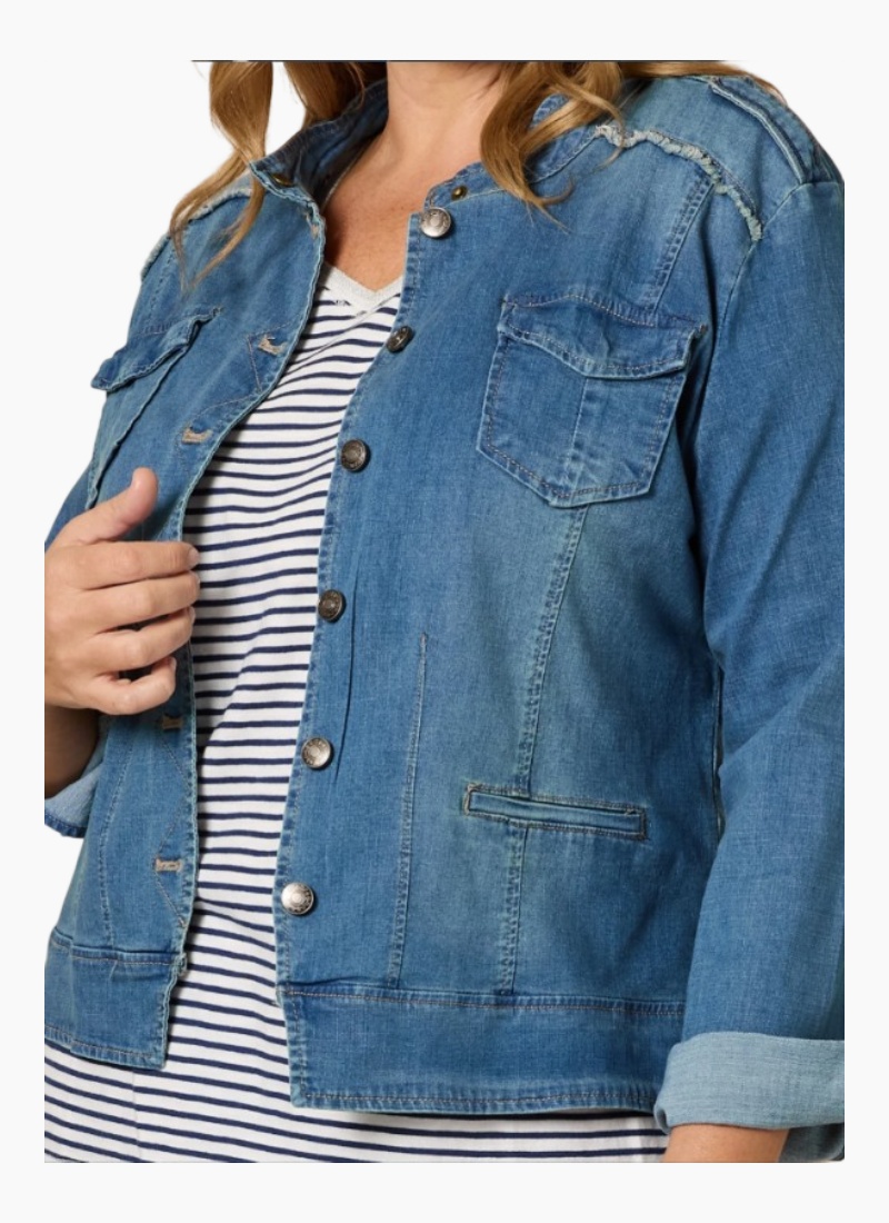 - Denim from Threadz. This relaxed denim jacket blends utility-inspired details with a soft, lived-in finish for effortless layering.