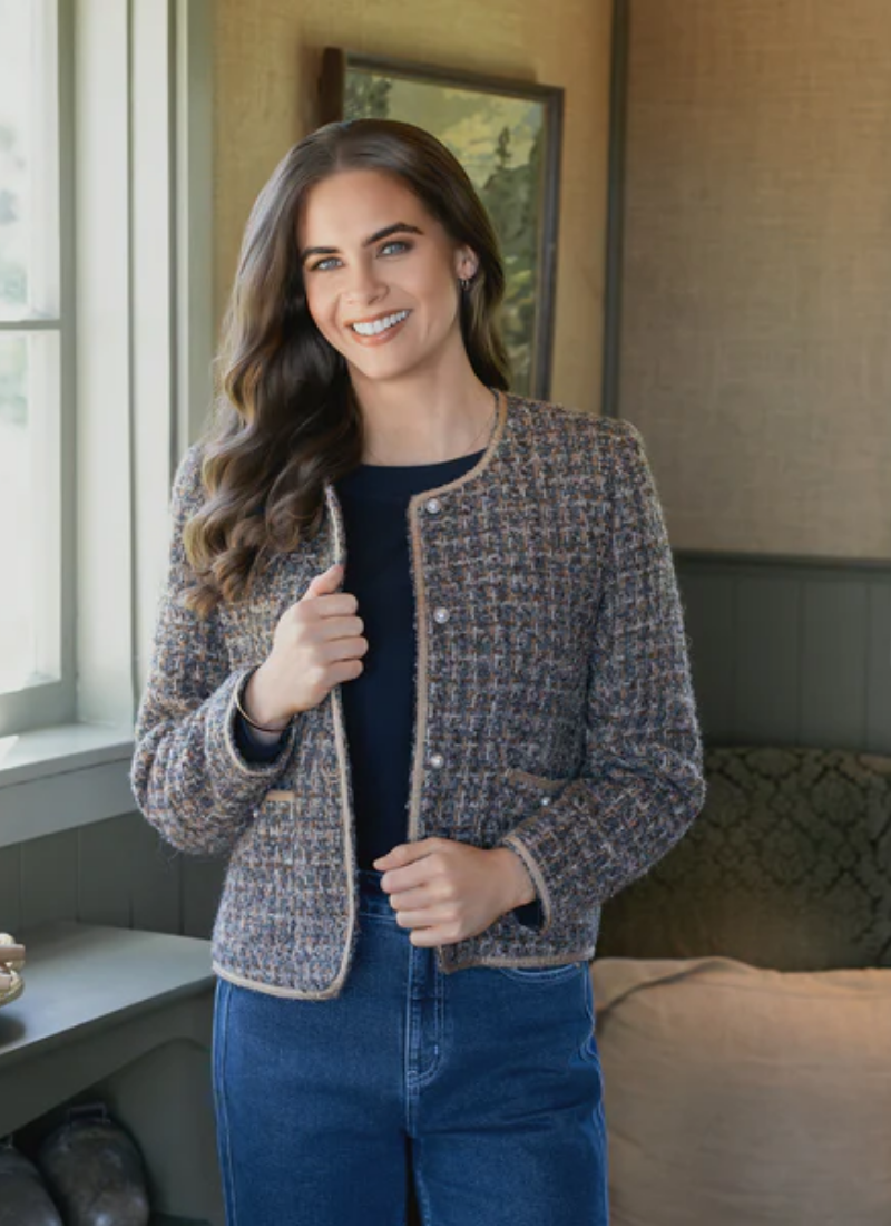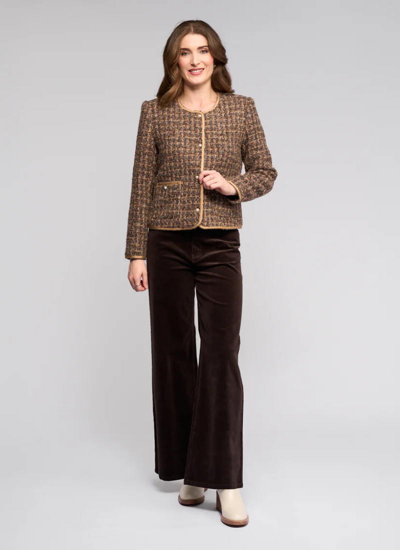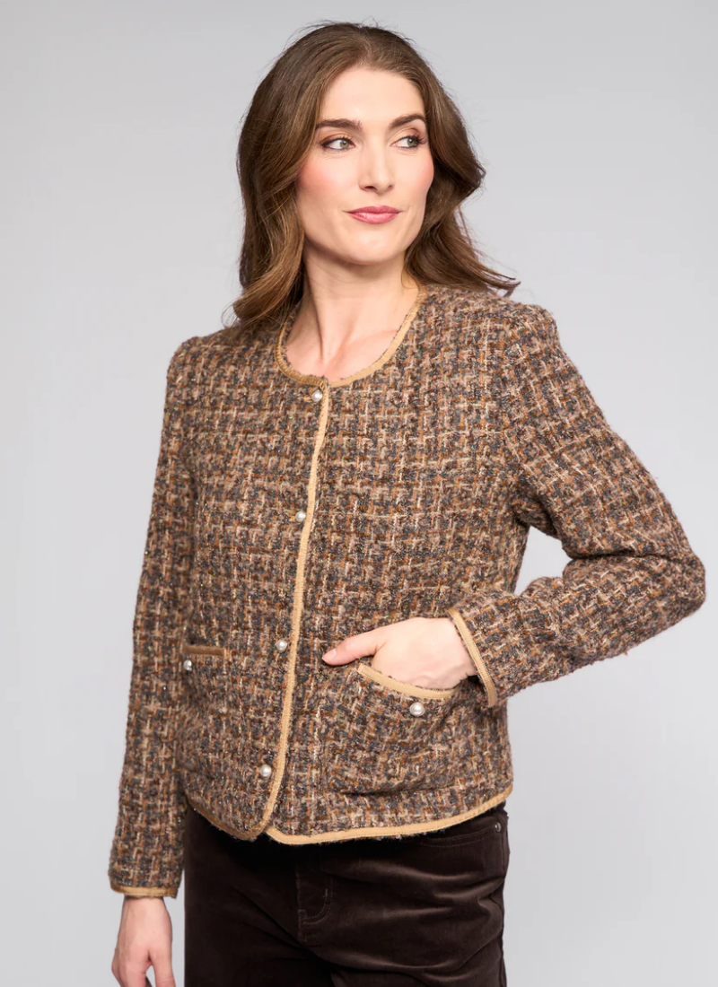 Introducing the Vassalli Stage Jacket - Florence. This refined brown tweed jacket blends classic tailoring with contemporary polish.
