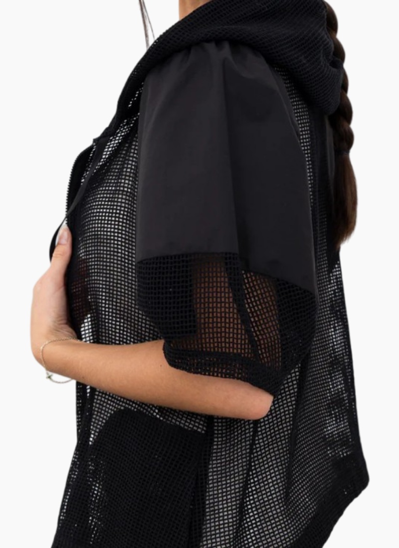 - Relaxed silhouette designed to layer over tees or activewear, perfect for transitional weather