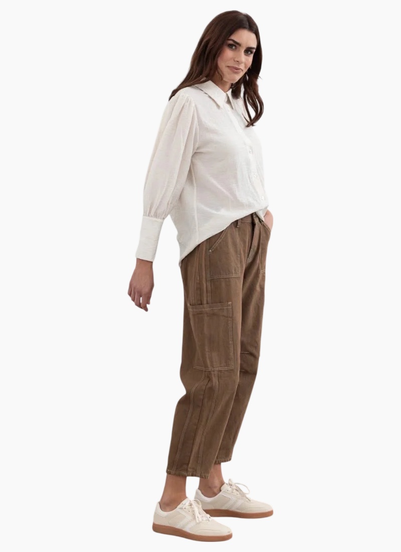 - brown wash from Mi Moso. A relaxed, utility-inspired women's jean in a warm brown wash, designed for everyday style.