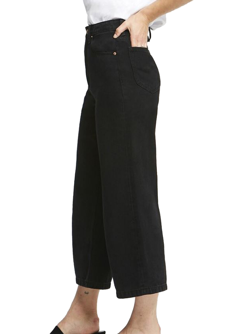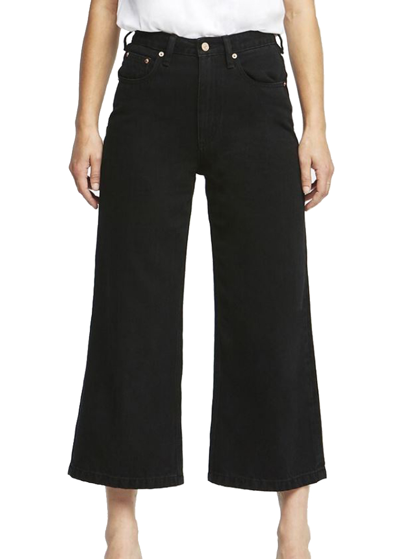 The new High Wide is the latest addition to our Anti Fit Library. This style is shaped to a high-rise and wide leg silhouette that falls to a cropped, kick flare. Finished in a soft comfort rigid denim in a black wash.