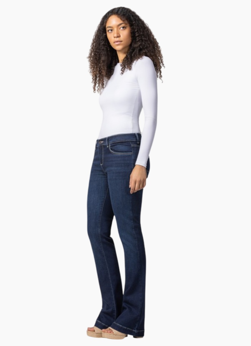 - Bootcut Jeans silhouette, fitted through the hip and thigh with a gentle flare at the hem for an elongating line
