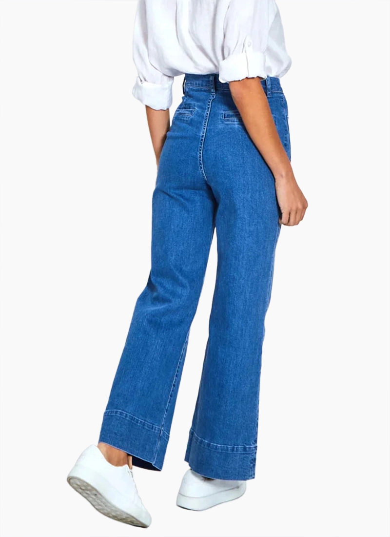Say hello to Milan... your cool new pair of jeans from Monaco Jeans/Leoni. We are loving the new wide jeans high waist trend. So flattering on all body shapes & these jeans tick all the right boxes! Featuring a high waist, wide leg & a cool washed blue finish. Wear with absolutely anything - they will become your new fave! Match with any shoe, dressed up or down & most of all they flatter & fit & feel so good on!