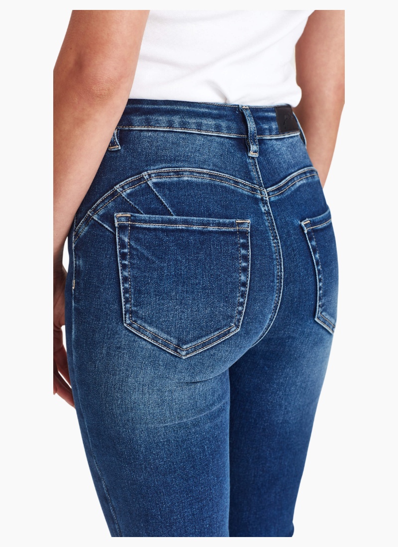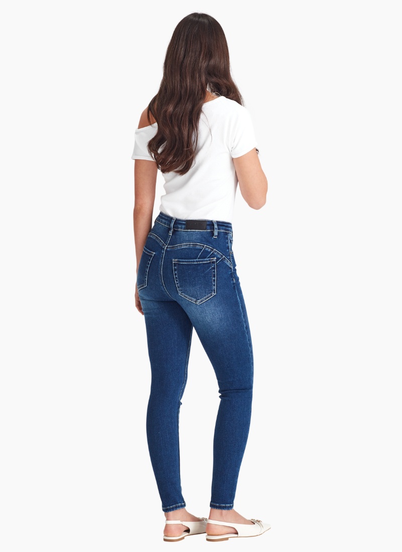 - Skinny Jeans silhouette designed to flatter the waist and lengthen the legline and lift the butt,
