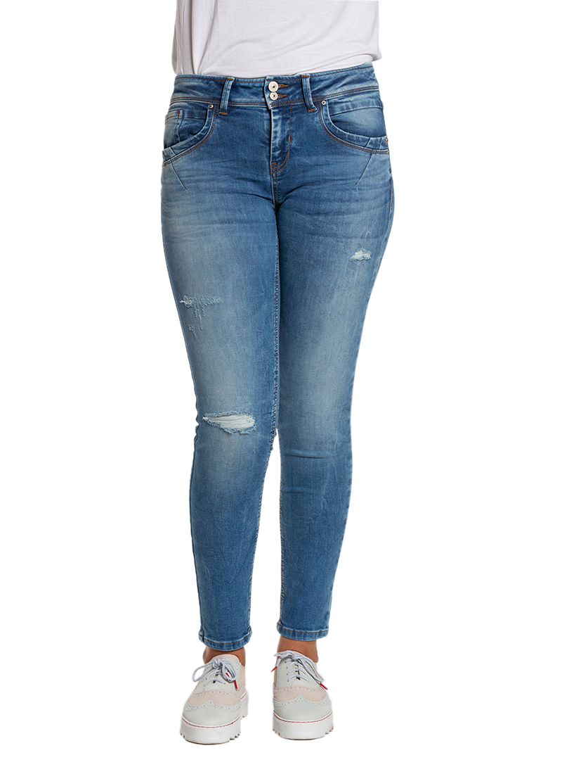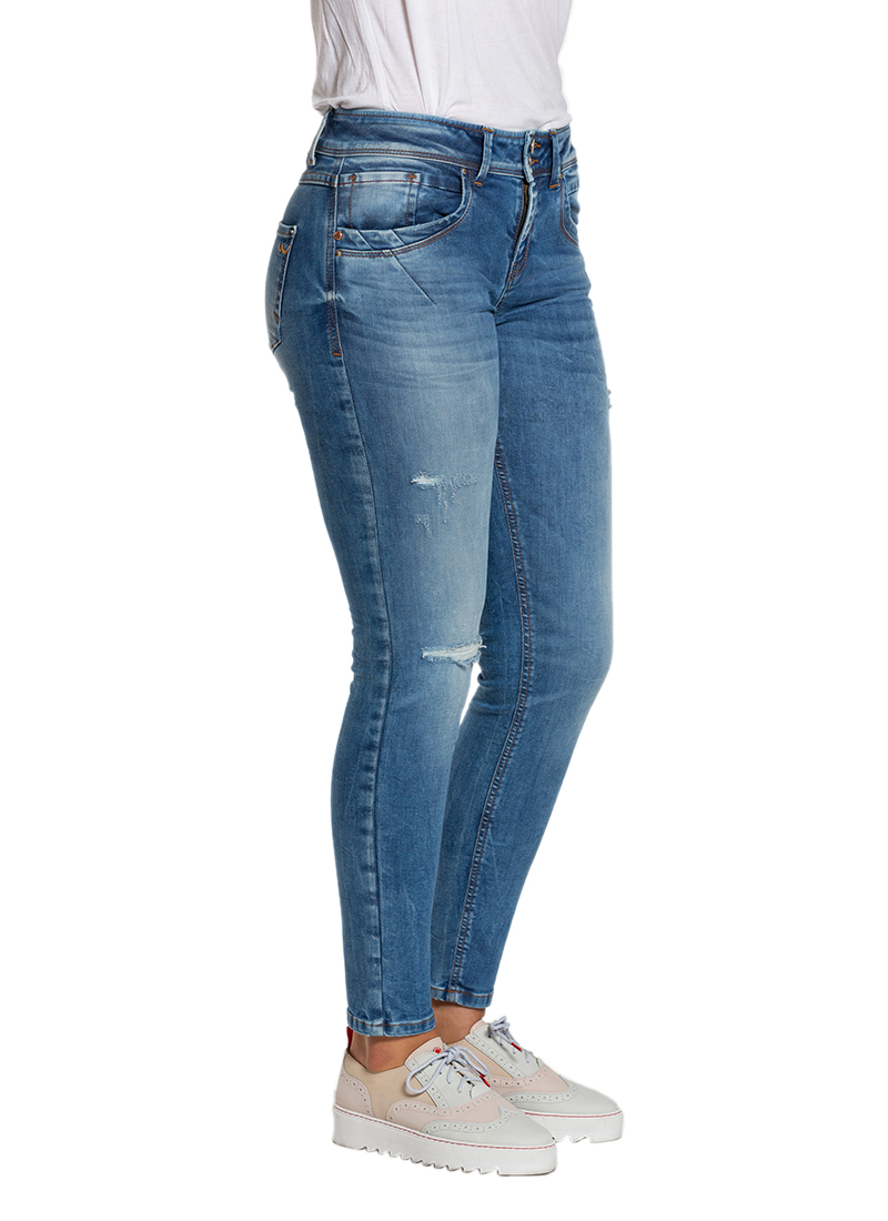 - Distressing on front of jeans